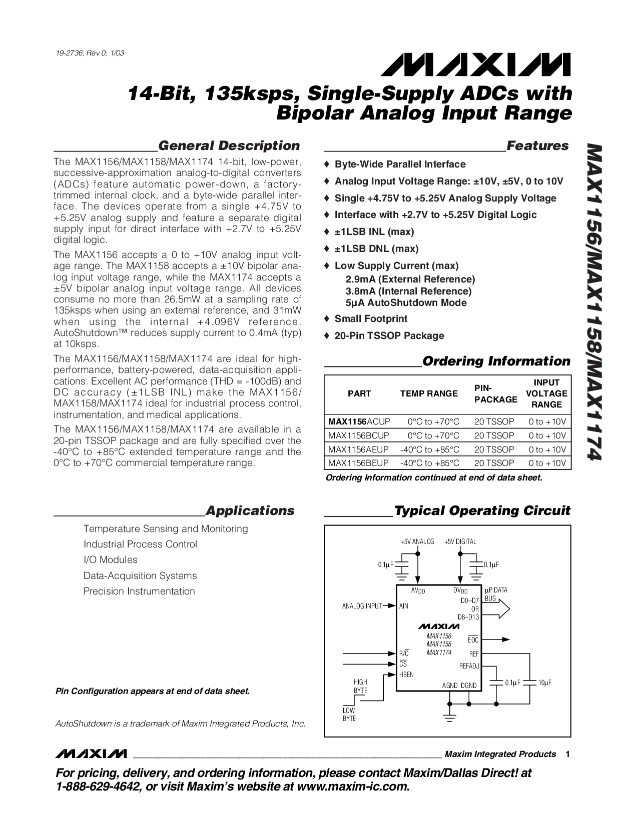 这 max1156/max1158/max1174 14-有点, 低-电源,