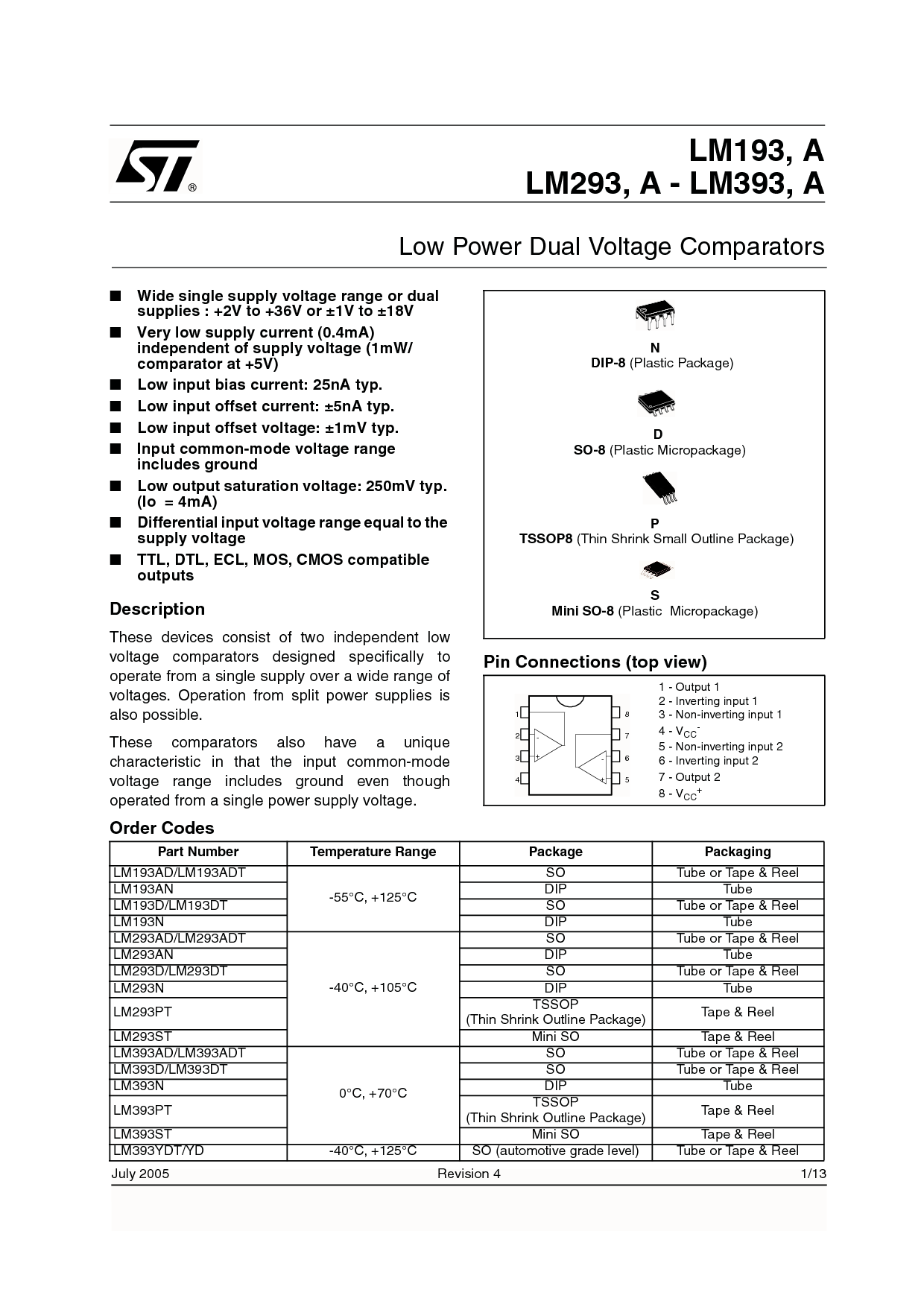 lm393ydt/yd -40°c, +125°c 所以 (汽车 等级 水平) 导管 或 胶带 &放大器; 卷轴