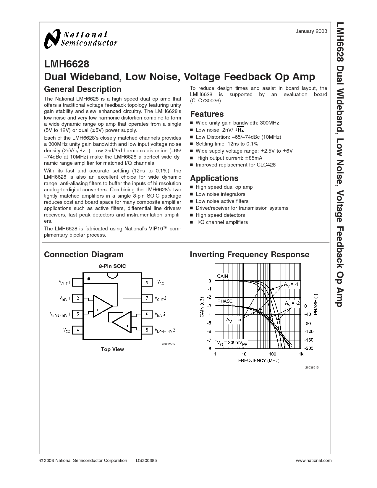 LMH6628 双 宽带, 低 噪声, 电压 反馈 op 放大器