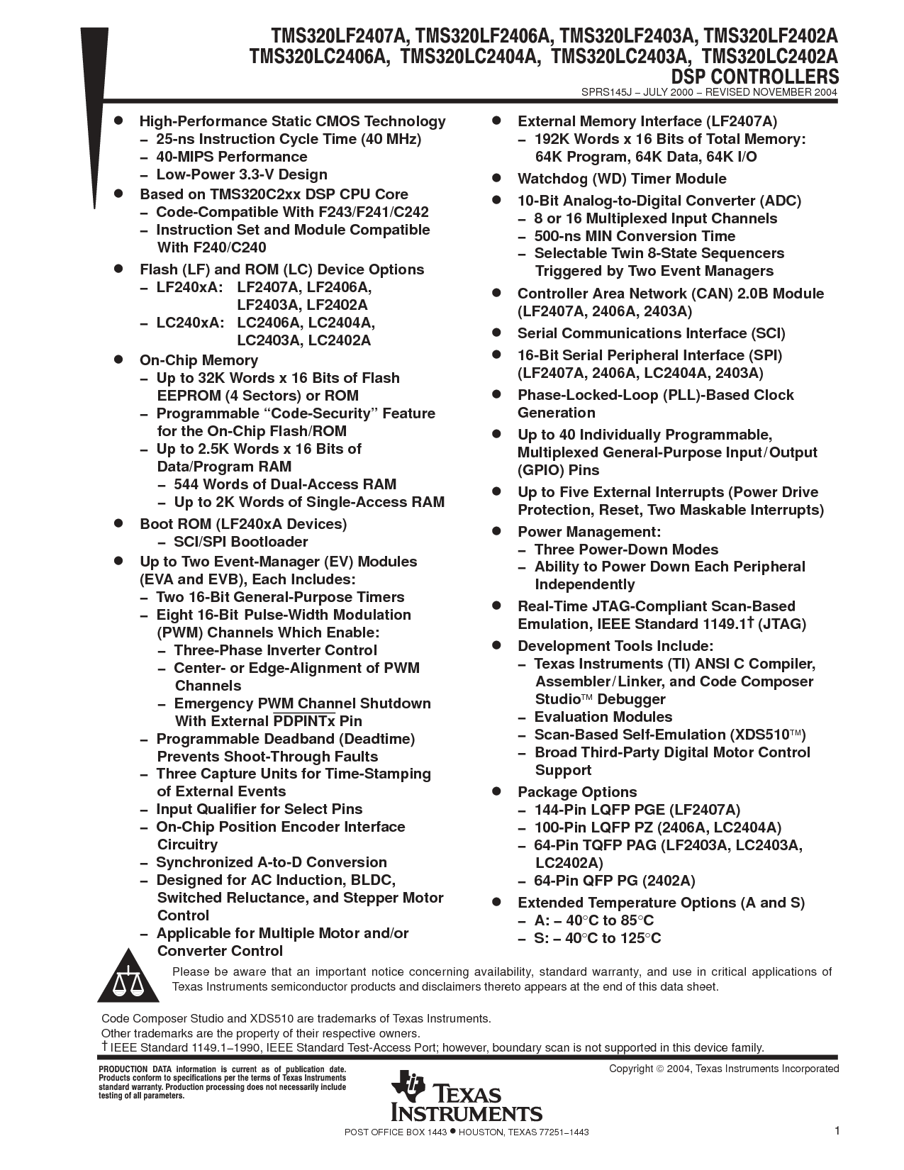 浏览型号TMS320LF2402A的Datasheet PDF文件第2页