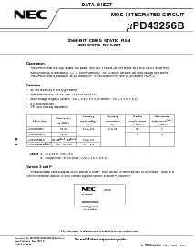 pd43256b 是 一个 高 速度, 低 电源, 和 262, 144 比特 (32,768 字词 由 8 bits) cmos 静态 ram.