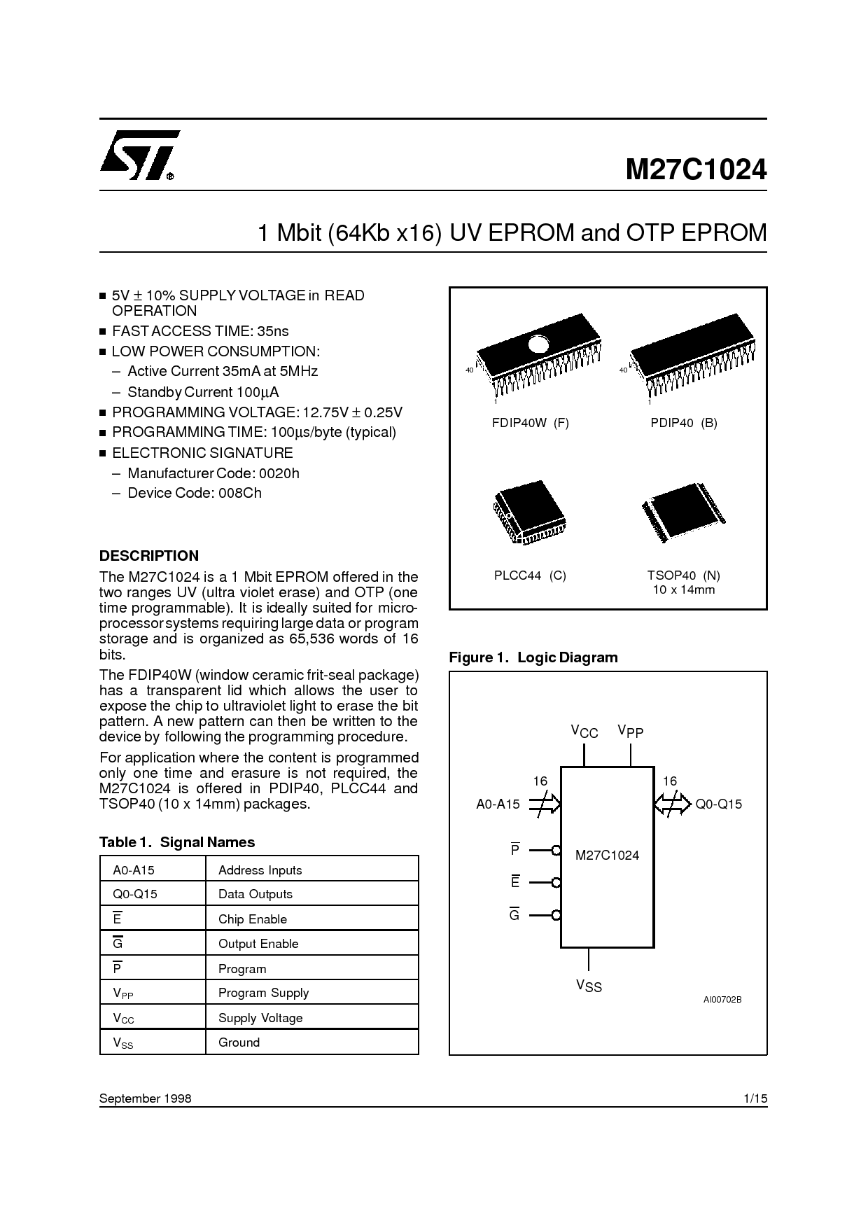 M27C1024 是 提供 入点 pdip40, PLCC44 和