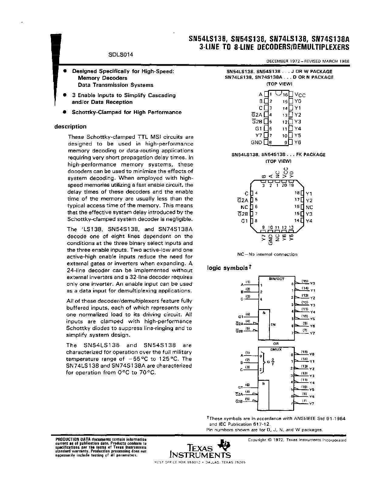 3-LINE TO 8-LINE DECODERS/DEMULTIPLEXERS