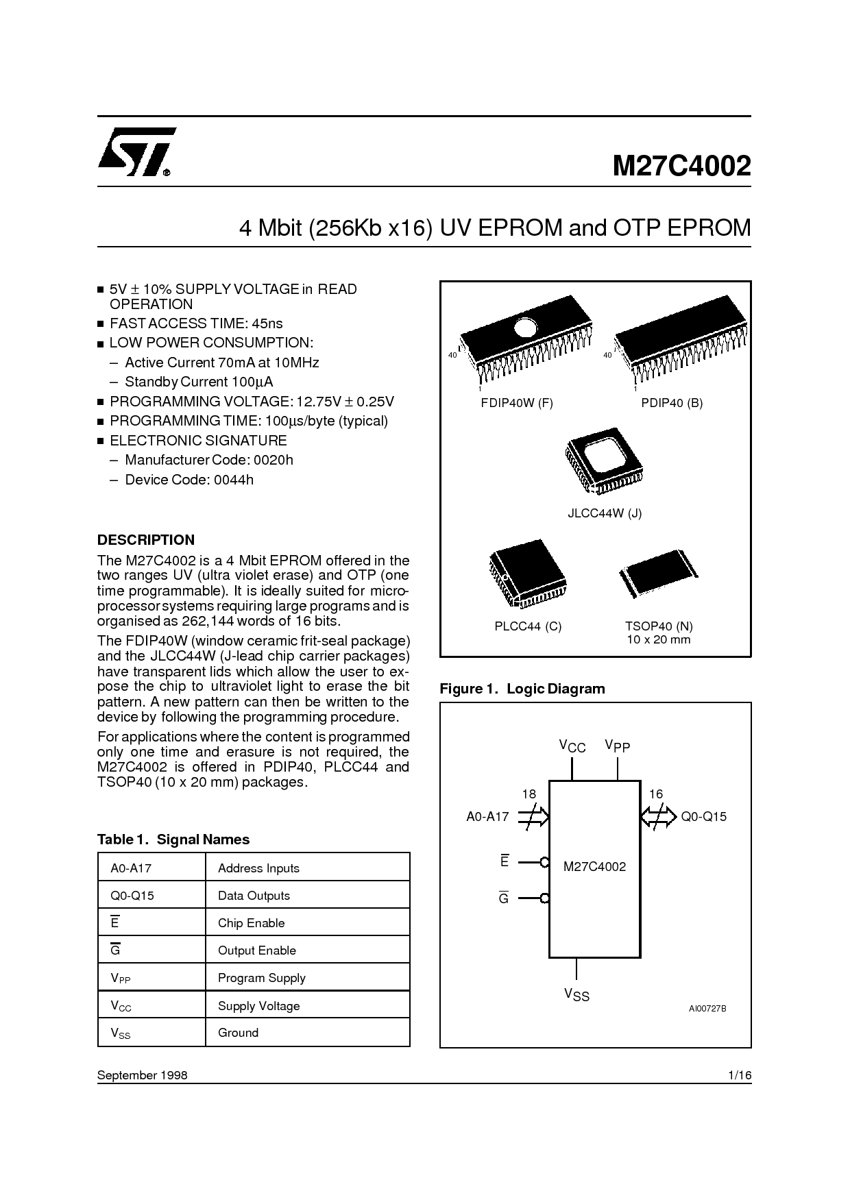 M27C4002 一个 4 Mbit 非易失存储器 提供 入点