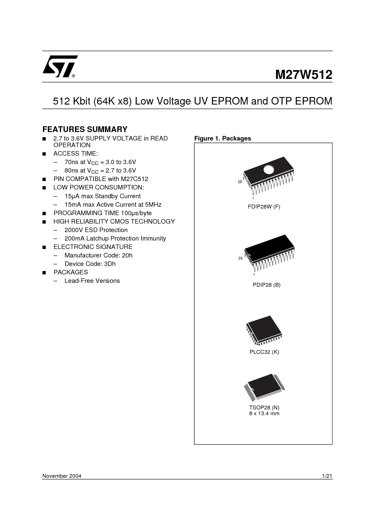 512 kbit (64k x8) 低 电压 uv 非易失存储器 和 otp 非易失存储器