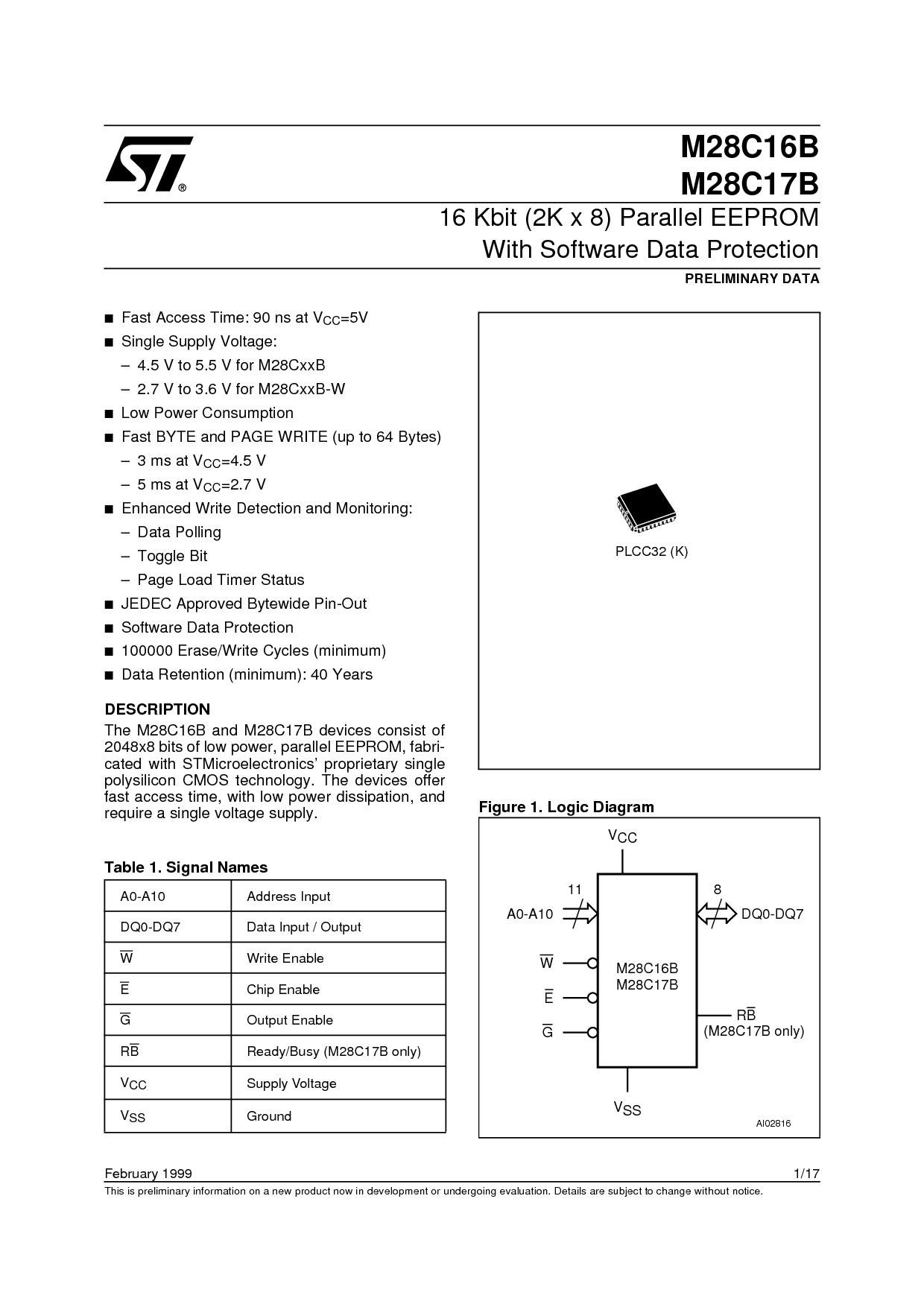 浏览型号M28C17-90K6TR的Datasheet PDF文件第2页