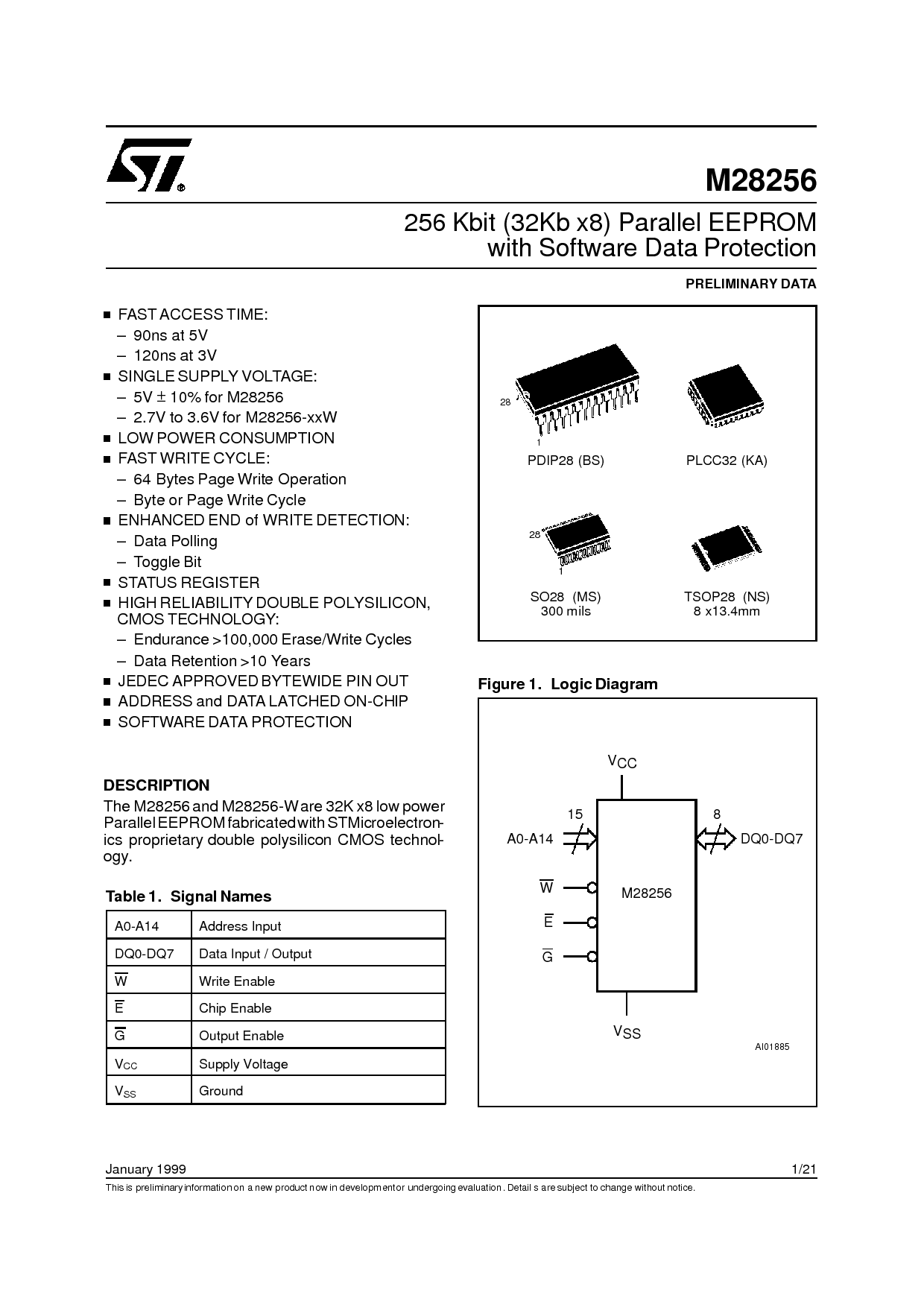 – 2.7v 至 3.6v 用于 m28256-xxw