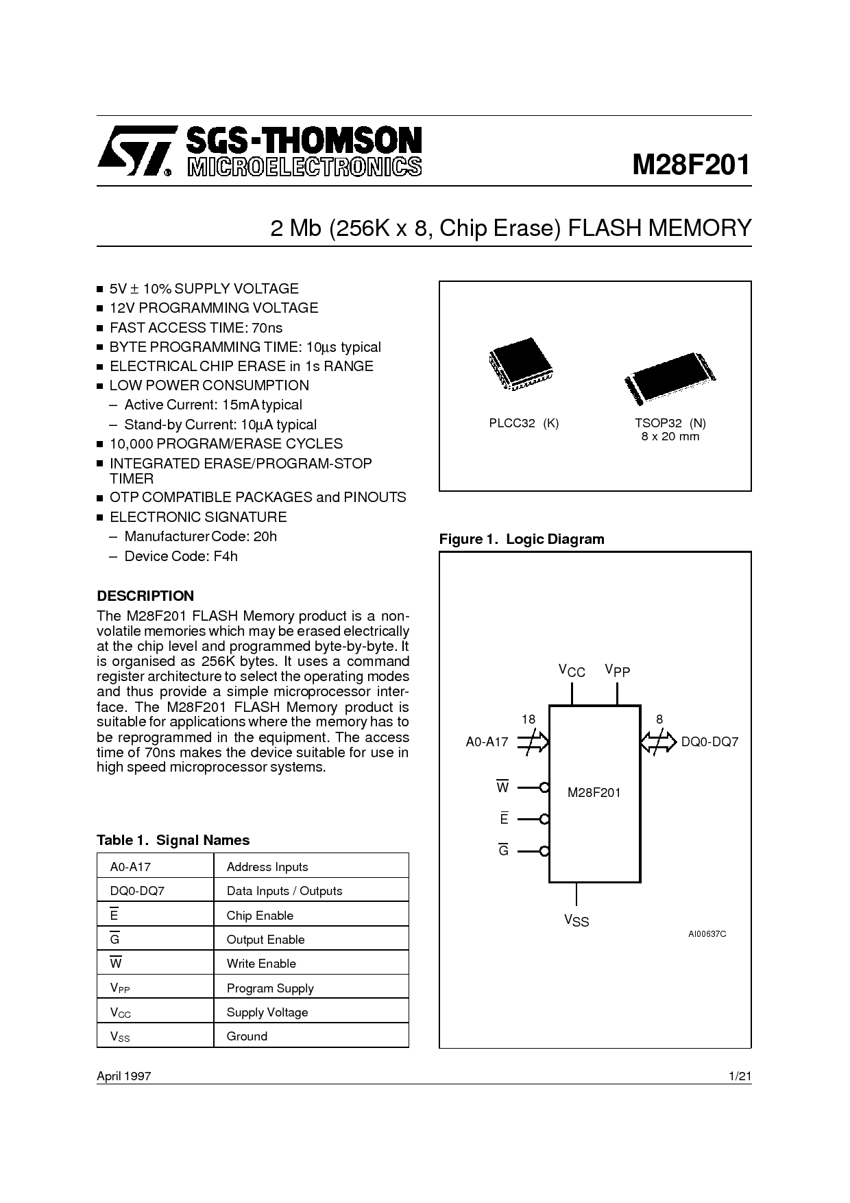 2 Mb 256K x 8, Chip Erase FLASH MEMORY
