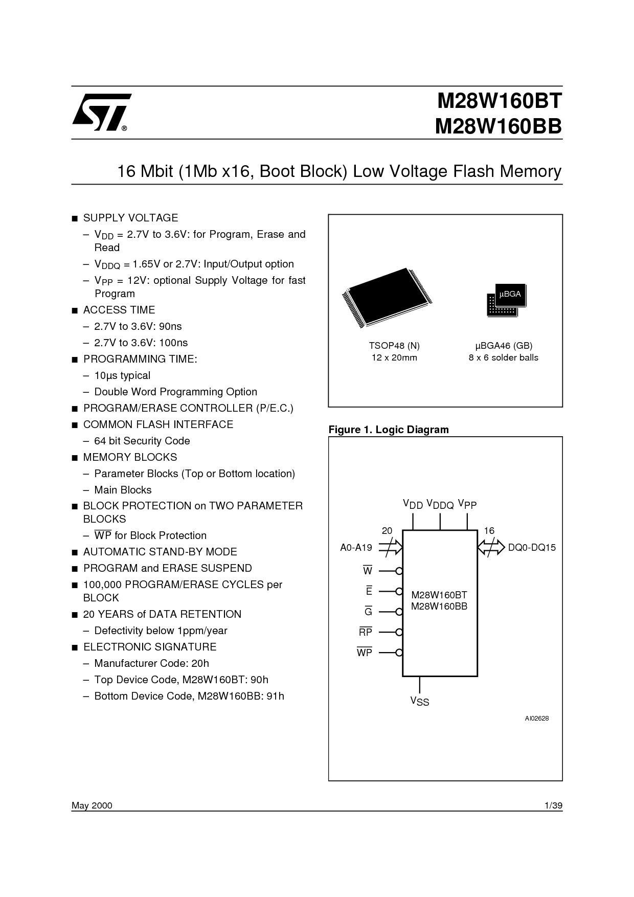 浏览型号M28W160BTB100GB1T的Datasheet PDF文件第2页