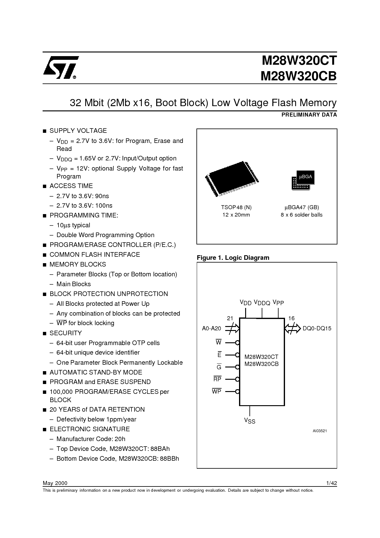 32 Mbit 2Mb x16, Boot Block Low Voltage Flash Memory