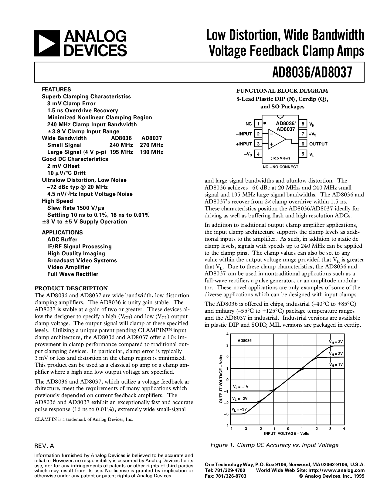 卡箍 体系结构, 这 ad8036 和 ad8037 报价 一个 10