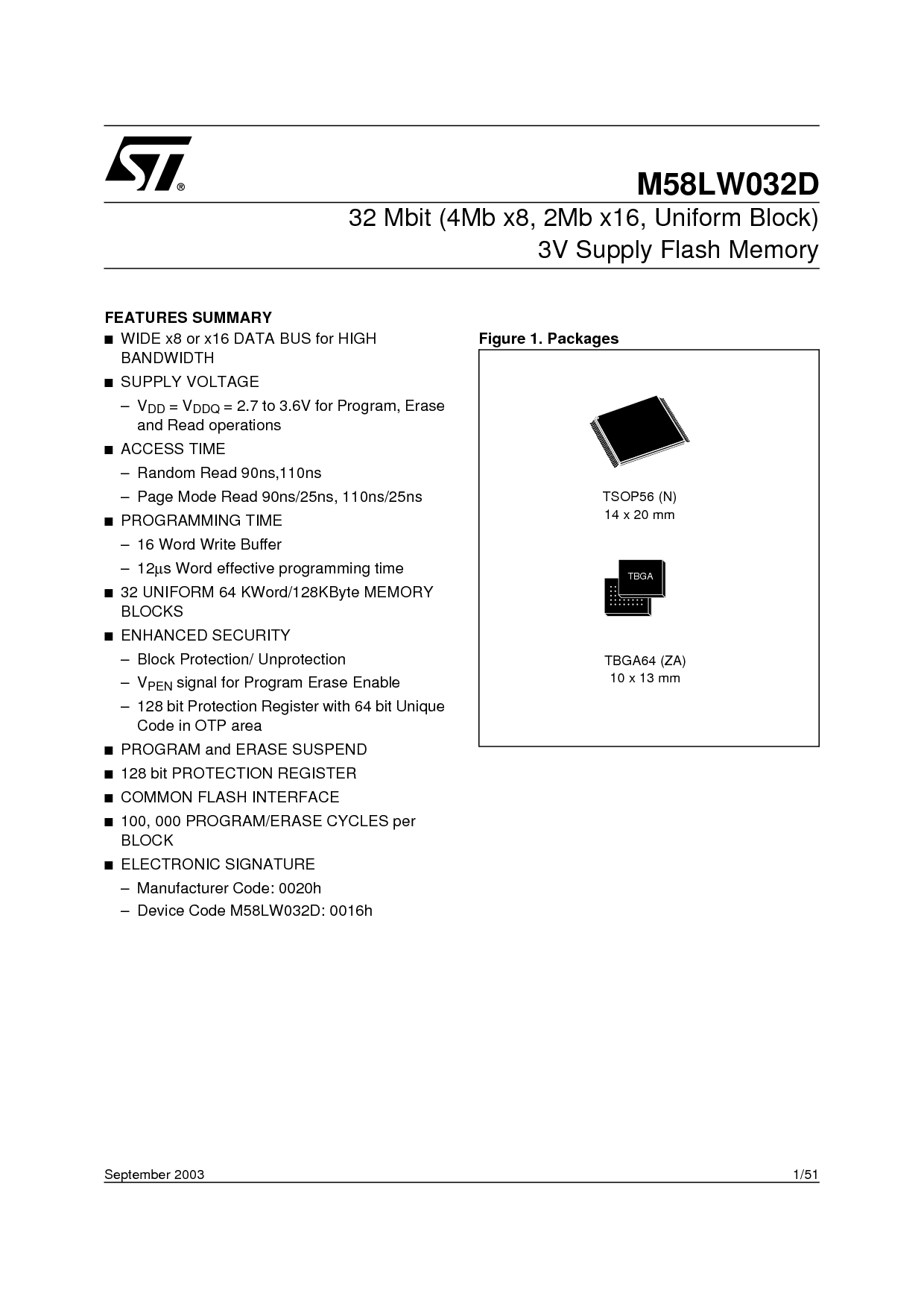 浏览型号M58LW032D90ZA6F的Datasheet PDF文件第2页