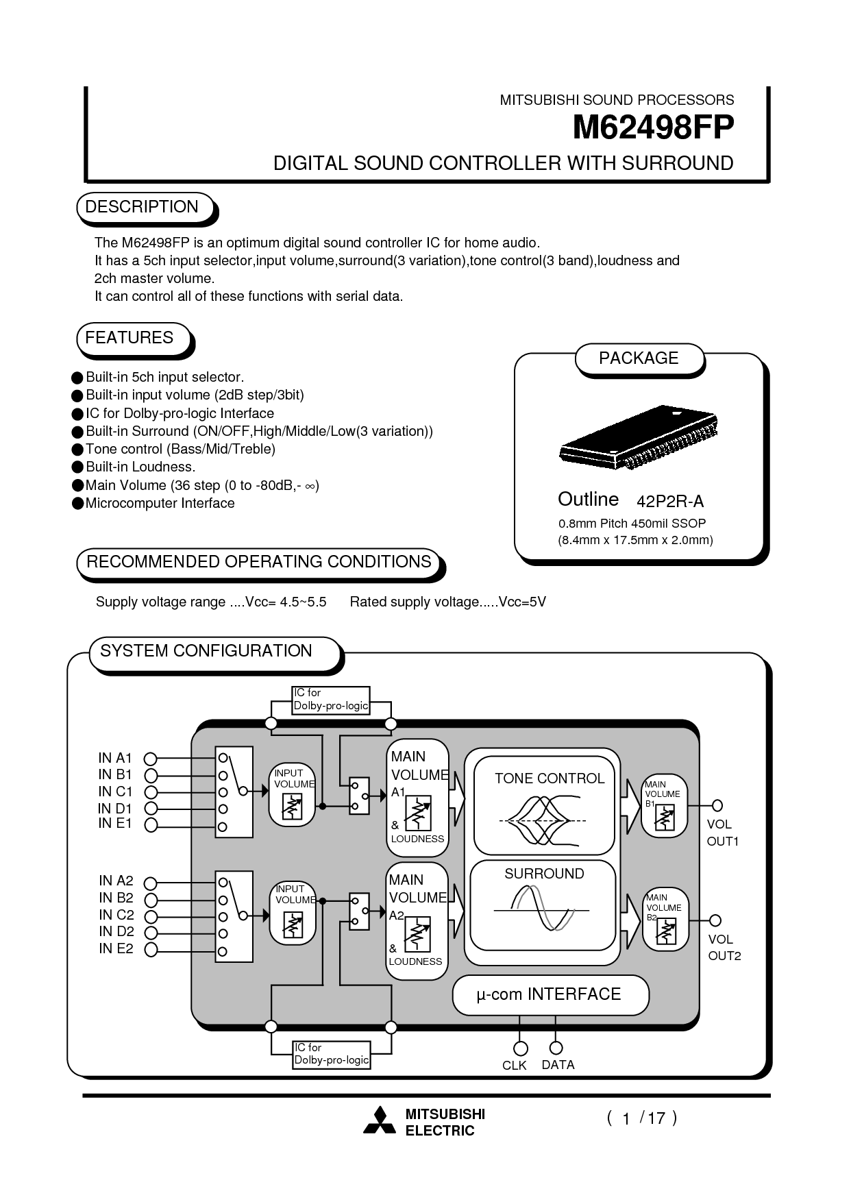 这 m62498fp 是 一个 最佳 数字 声音 控制器 集成电路 用于 主页 音频.