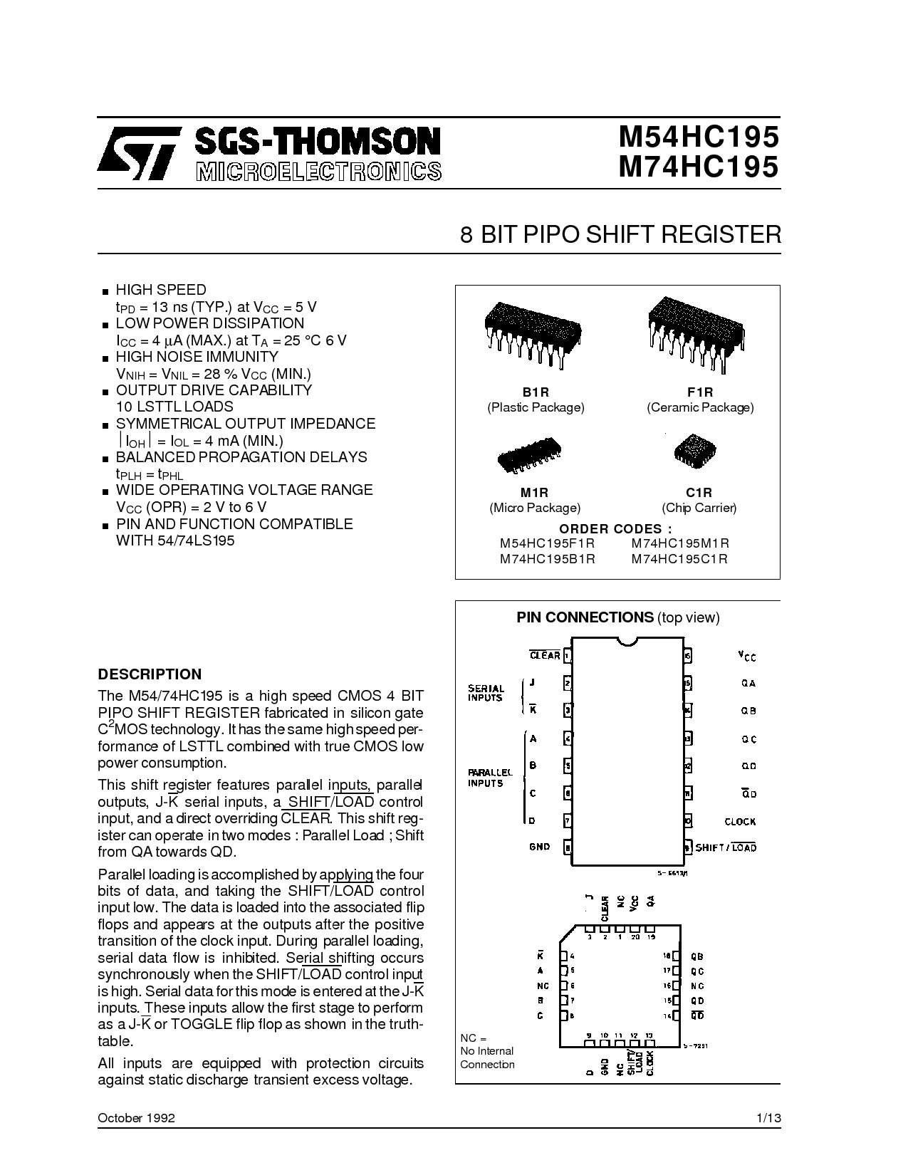 浏览型号M74HC195M1R的Datasheet PDF文件第2页