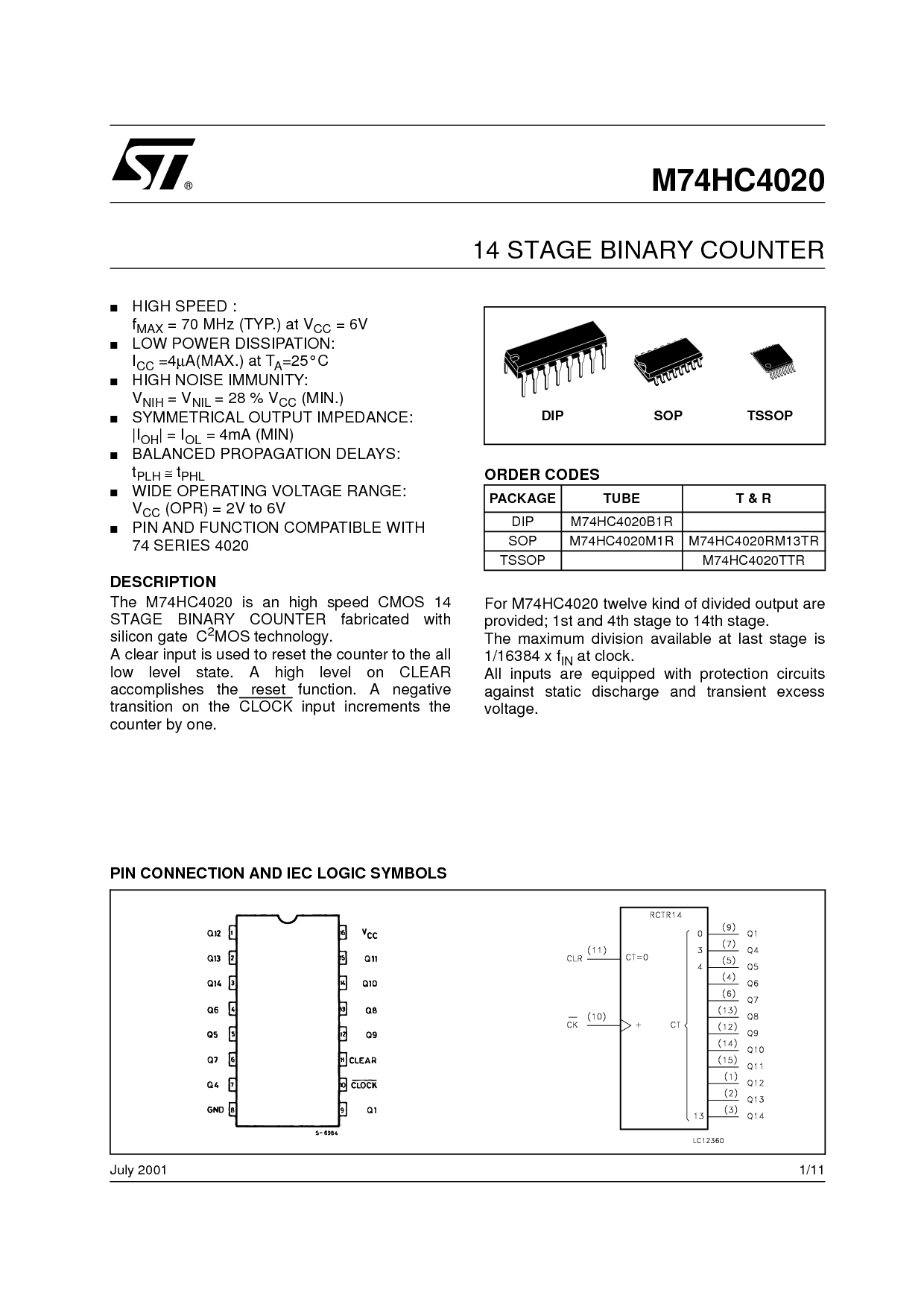 这 m74hc4020 是 一个 高 速度 cmos 14