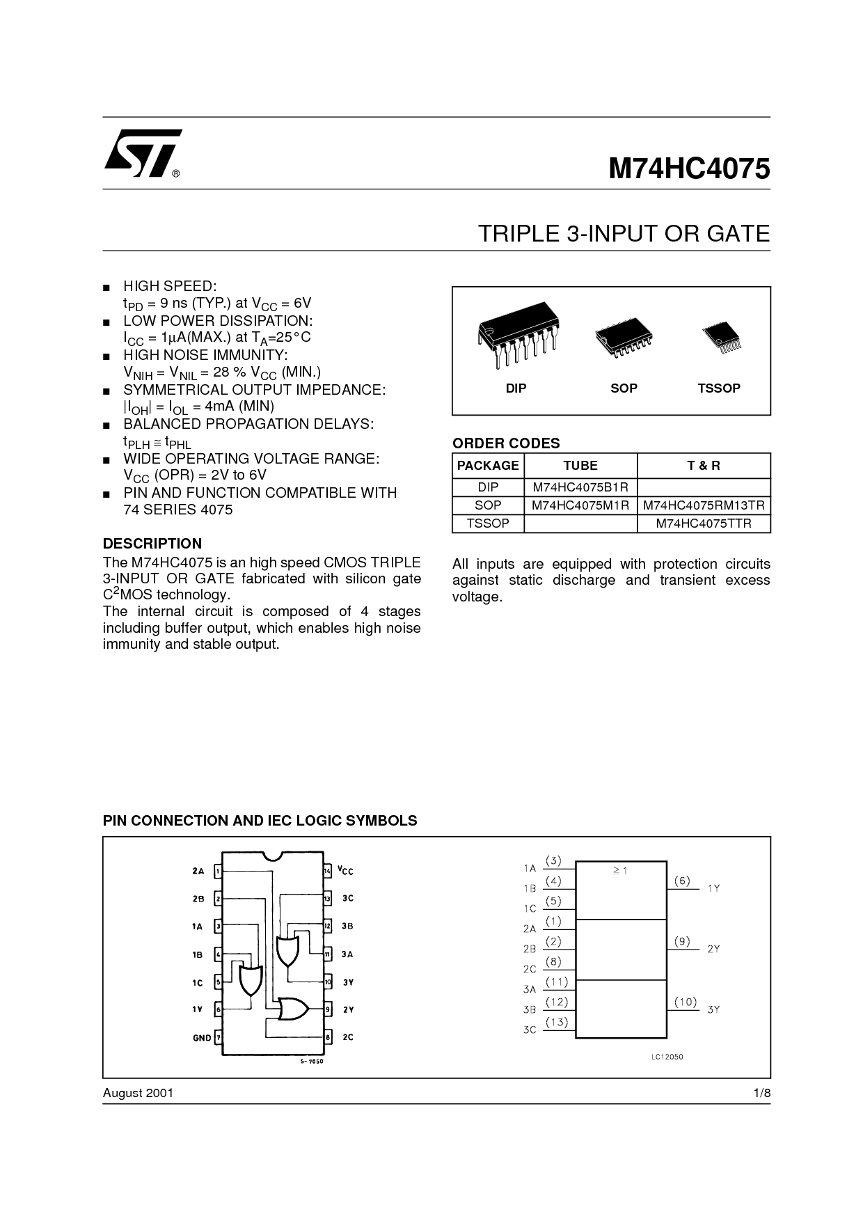 这 m74hc4075 是 一个 高 速度 cmos 三倍
