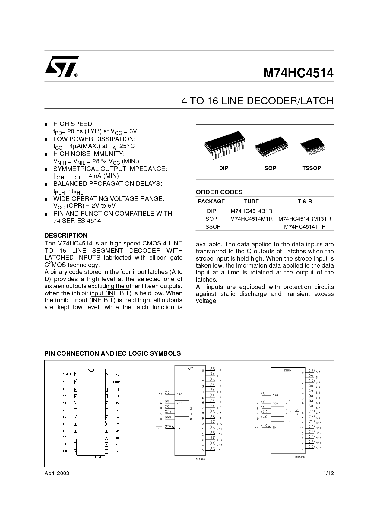 浏览型号M74HC4514M1R的Datasheet PDF文件第3页