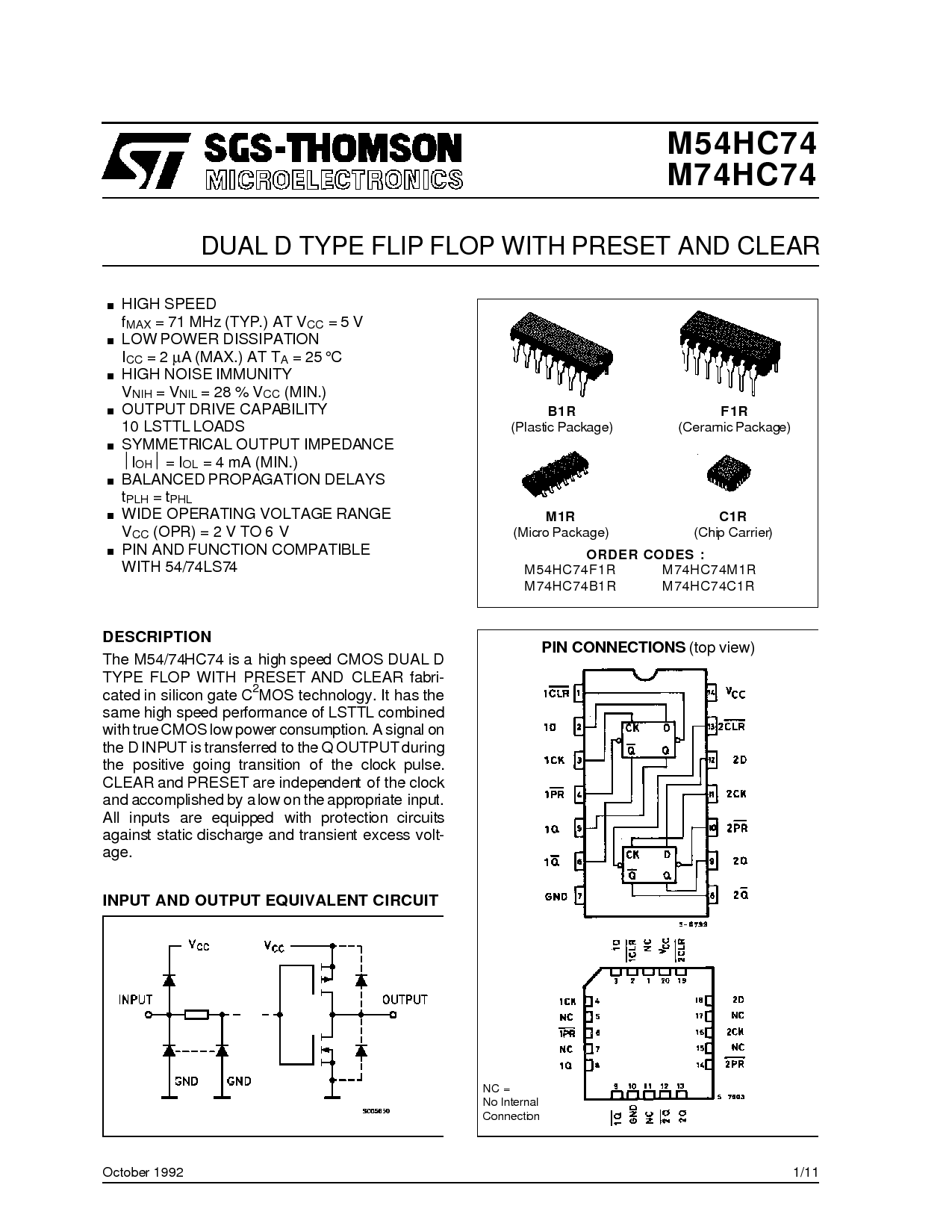 这 m54/74hc74 是 一个 高 速度 CMOS 双 d