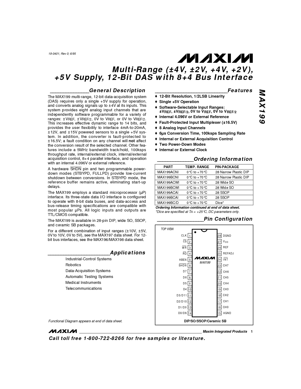 MAX199BCAI 0°c 至 +70°c 28 ssop
