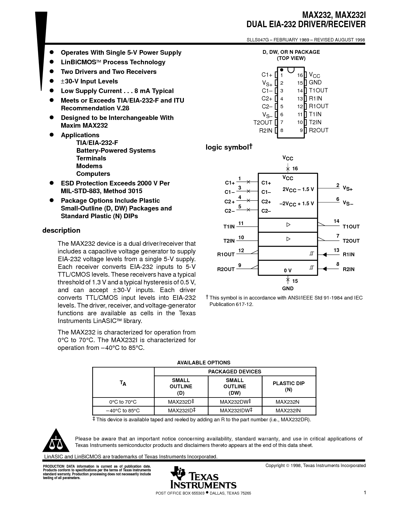 这 max232 设备 是 一个 双 驾驶员/接收器 那