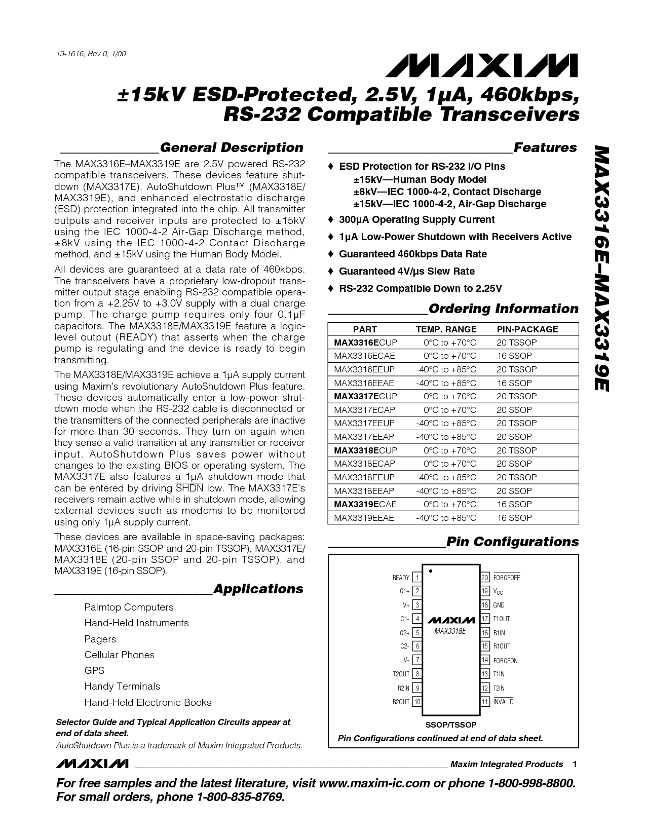 max3316e (16-管脚 ssop 和 20-管脚 tssop), max3317e/