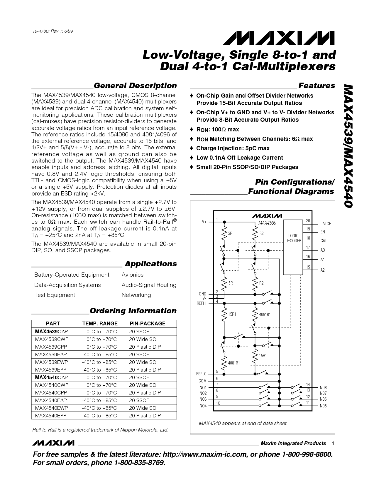 19-4780; rev 1; 6/99