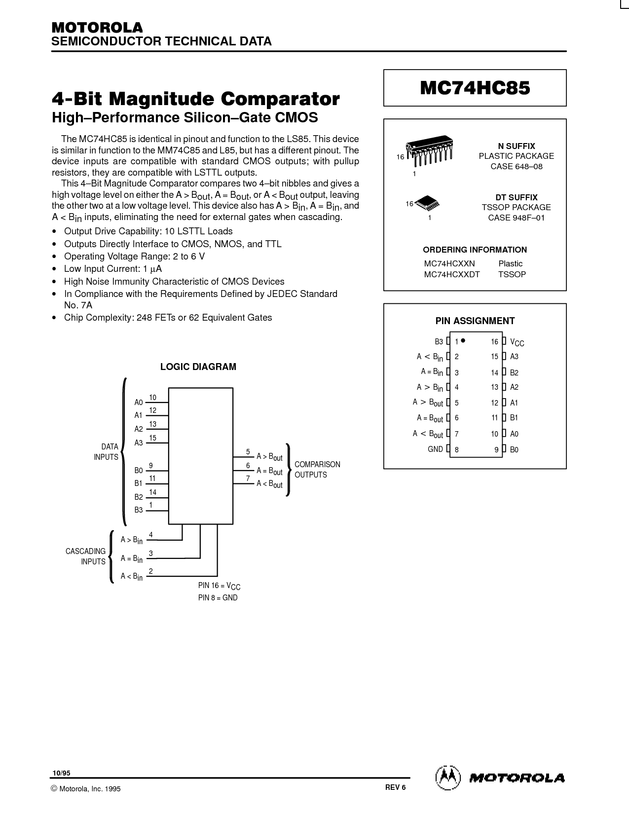这mc74hc85 是 相同 入点 引出线 和 功能 至 这 ls85. 这个 设备