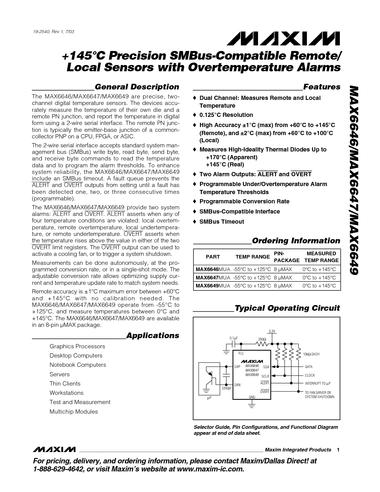 +145°c. 这 max6646/max6647/max6649 是 可用