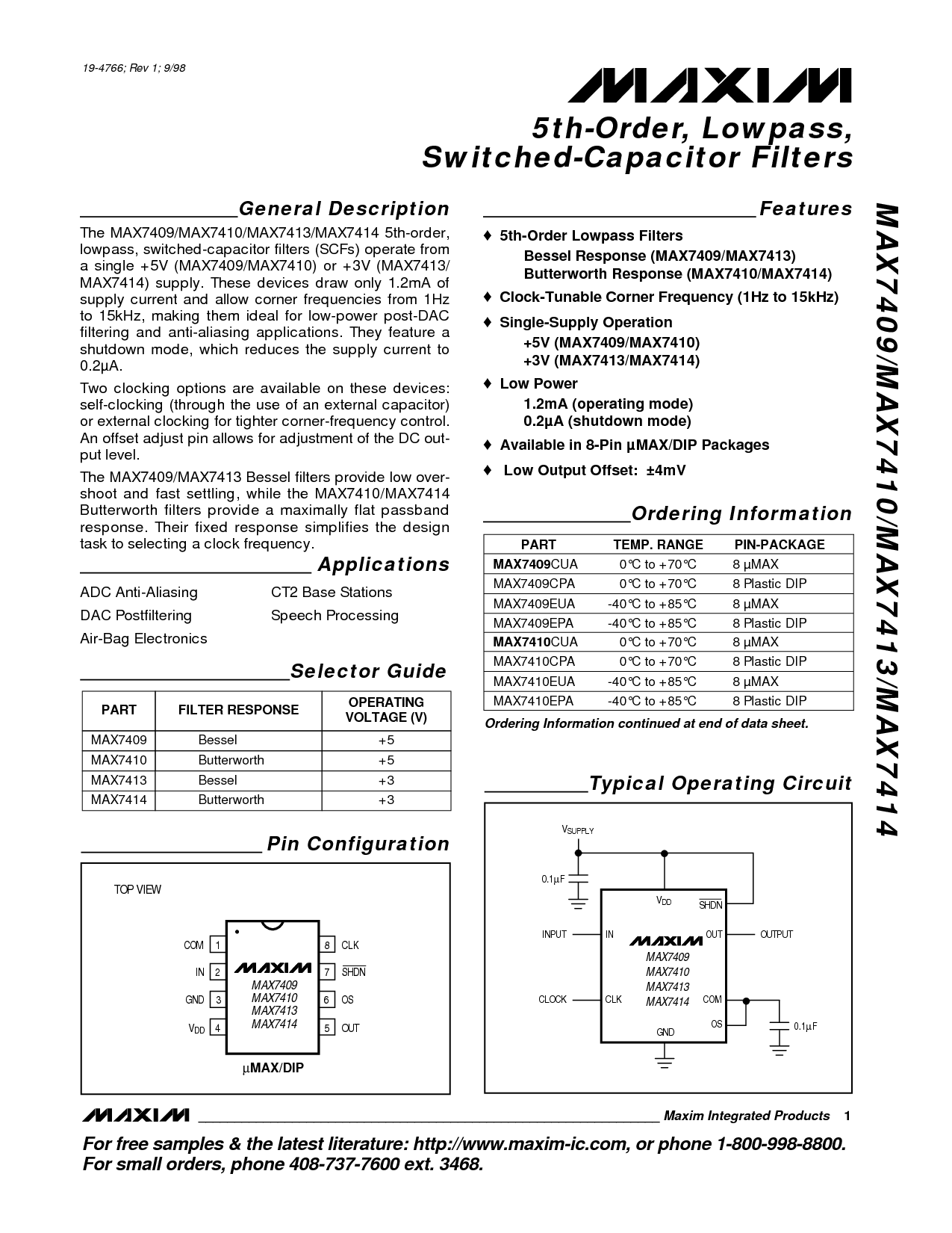 用于 免费 样品 &放大器; 这 最新 文学: http://www.马克西姆-集成电路.com, 或 电话 1-800-998-8800.