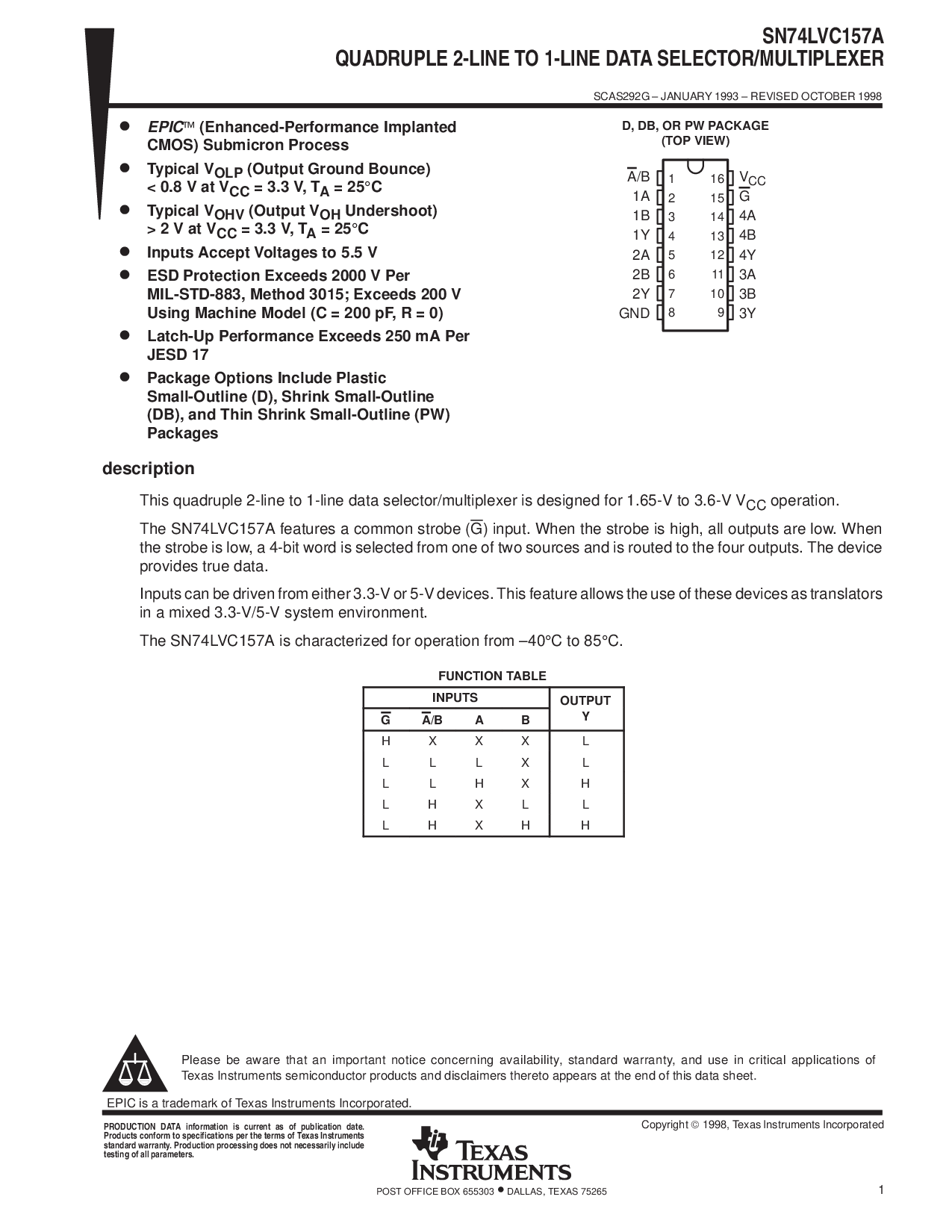 这 sn74lvc157a 特点 一个 普通 频闪 (g