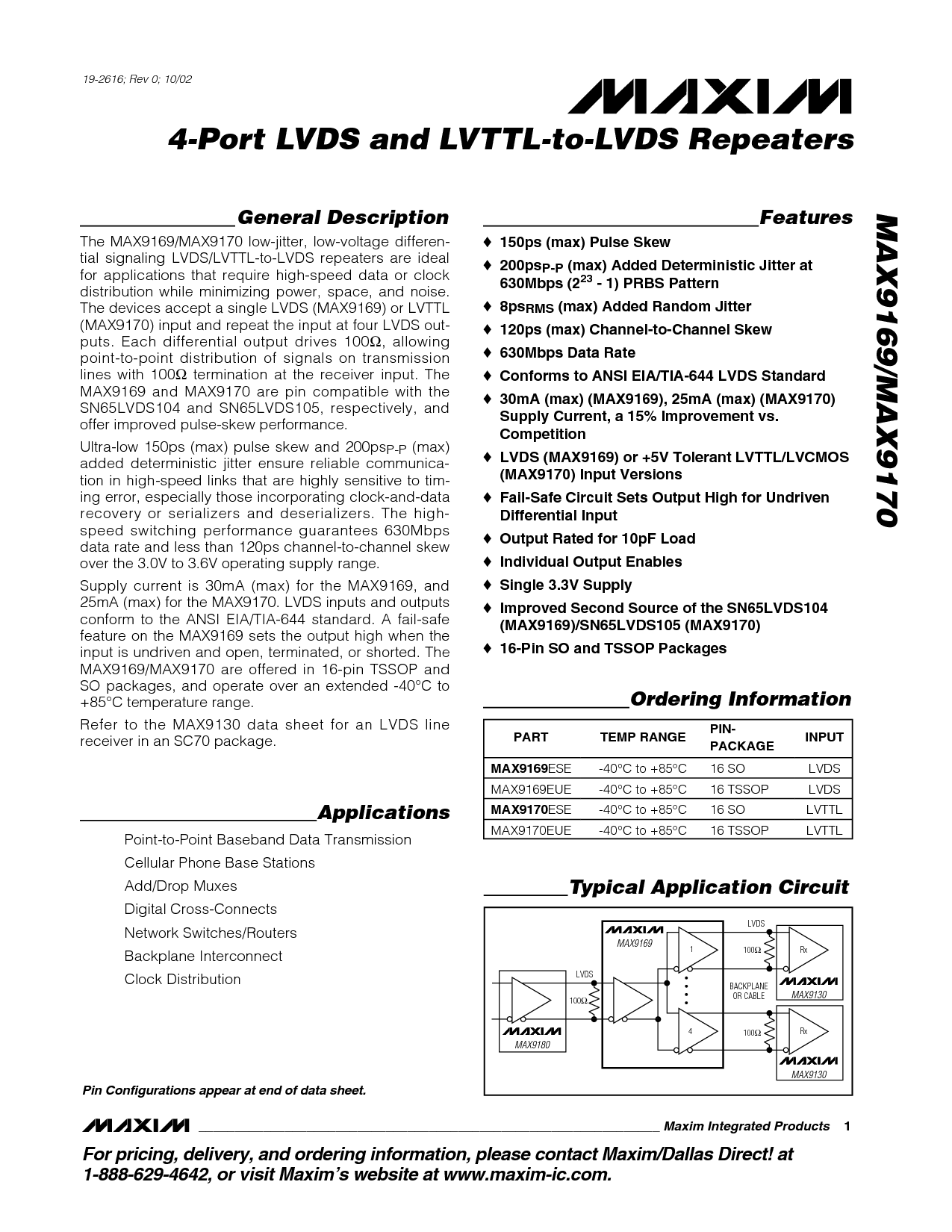 这 max9169/max9170 低-抖动, 低电压 差异-