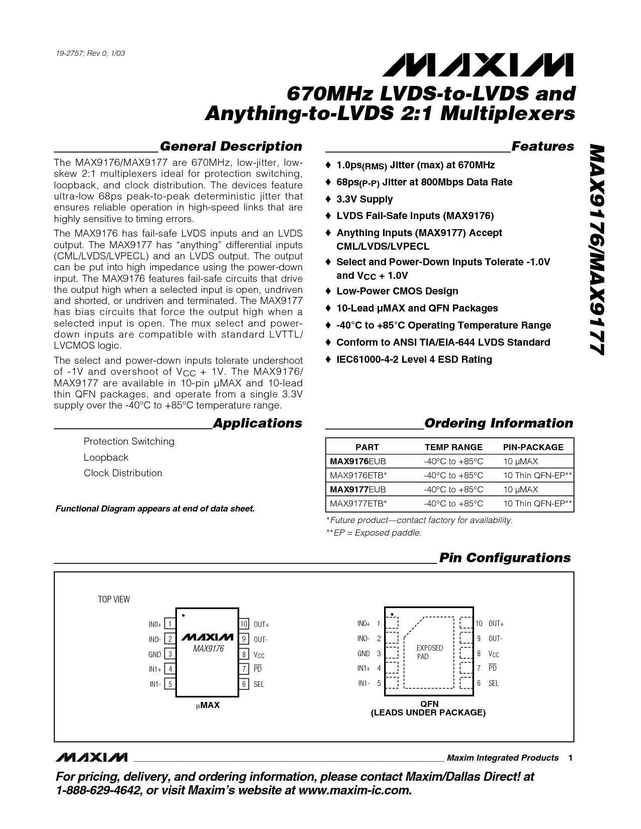 这 max9176/max9177 是 670mhz, 低-抖动, 低-