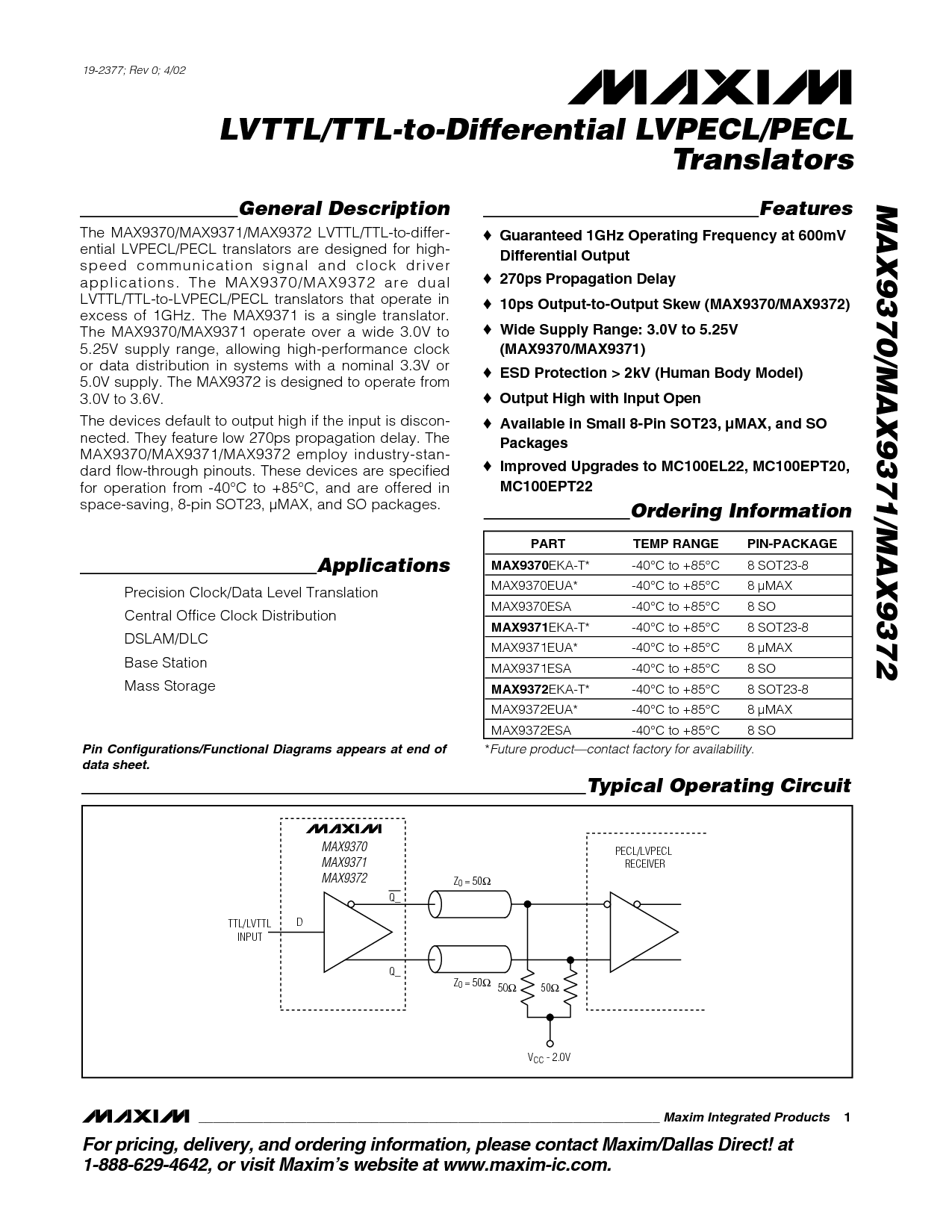 超额 的 1ghz. 这 max9371 是 一个 单独 翻译器.