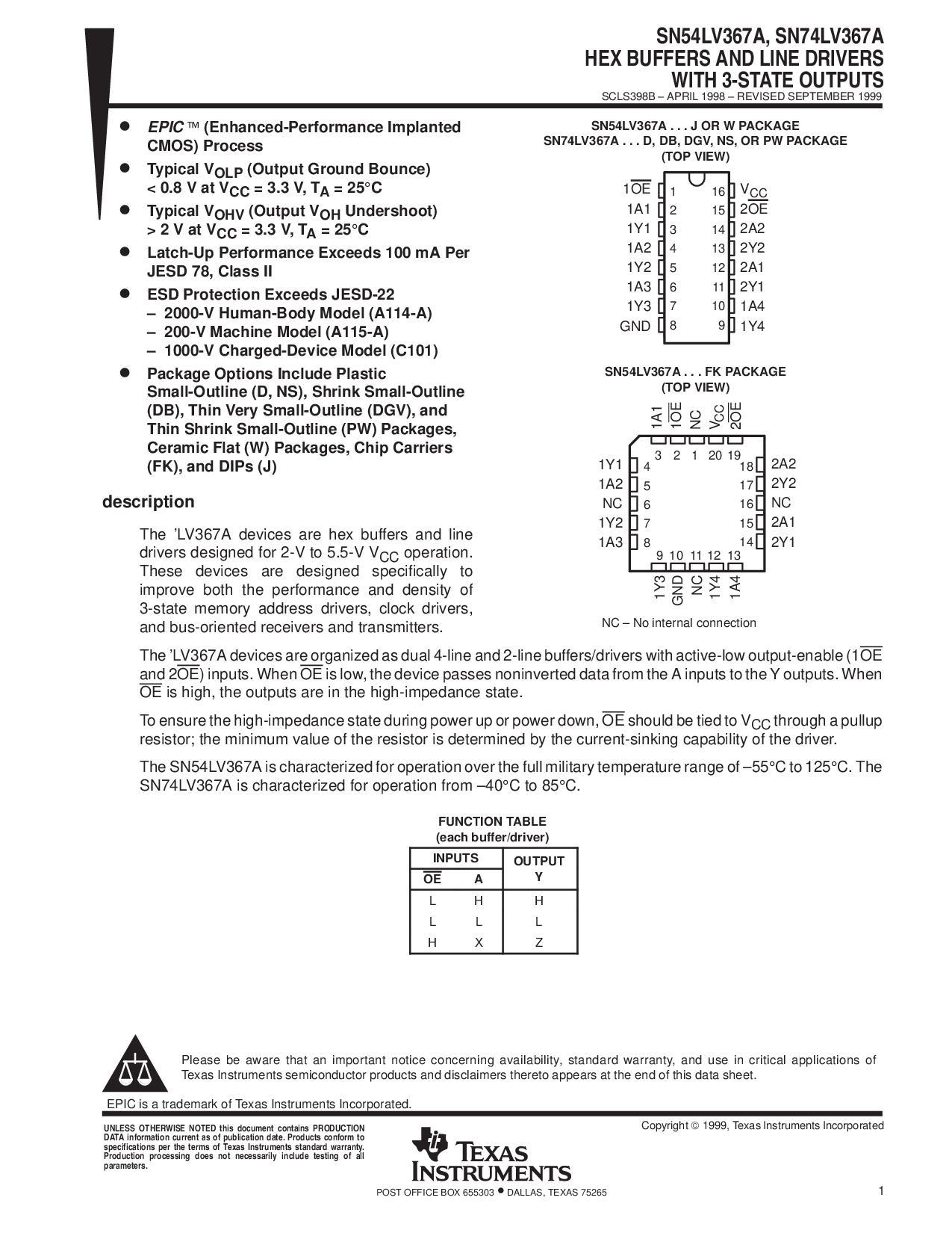 sn54lv367a, sn74lv367a