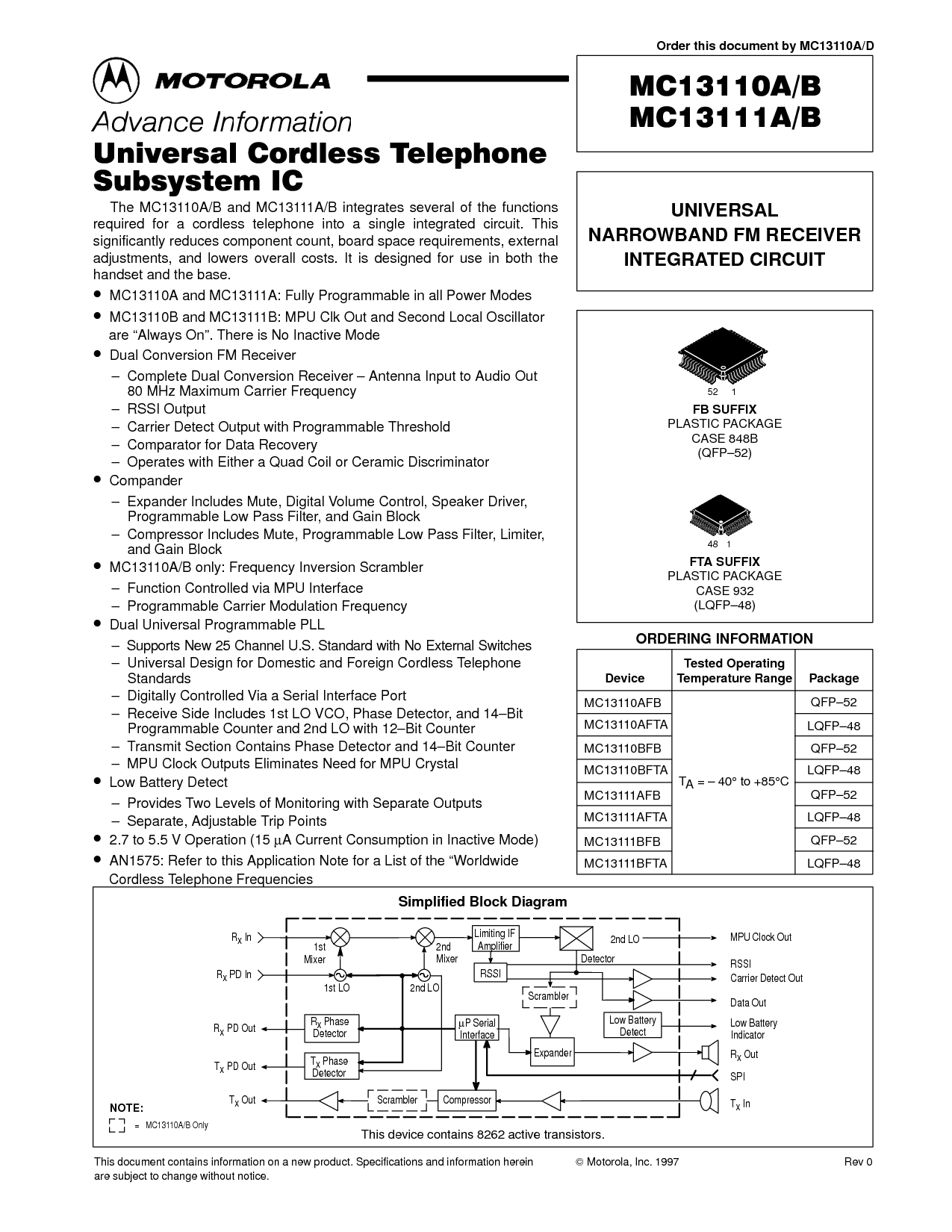 这 mc13110a/b 和 mc13111a/b 集成 几个 的 这 功能