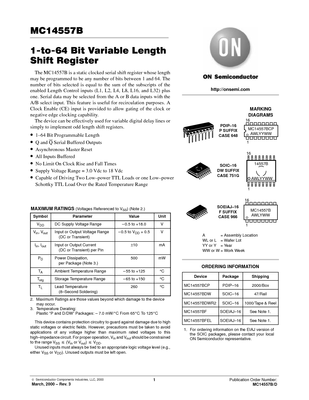 MC14557BCP PDIP–16 2000/框