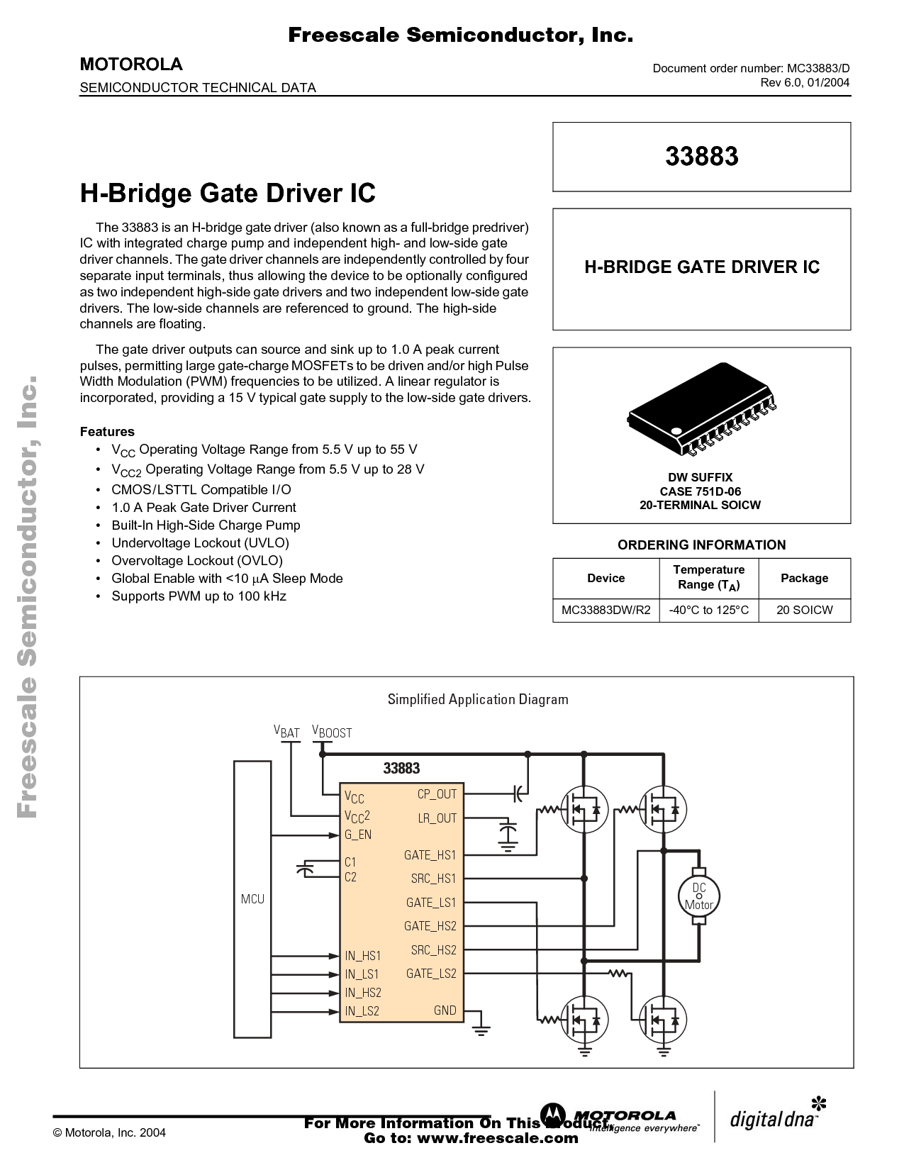 这 33883 是 一个 h-桥梁 闸门 驾驶员(也 已知 作为 一个 全桥 前置驱动器)