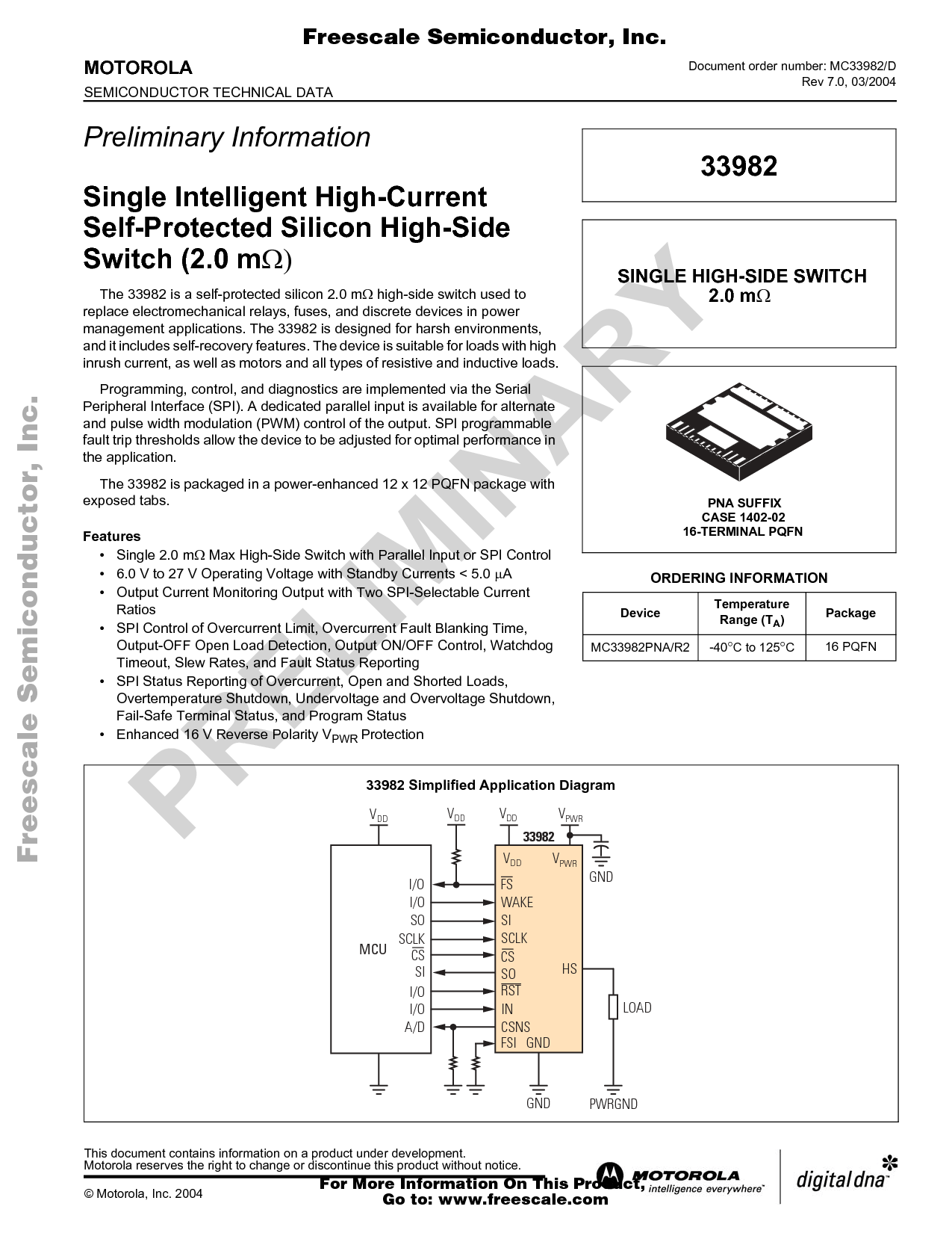 这 33982 是 已打包 入点 一个 电源-增强型 12 x 12 pqfn 包装 与