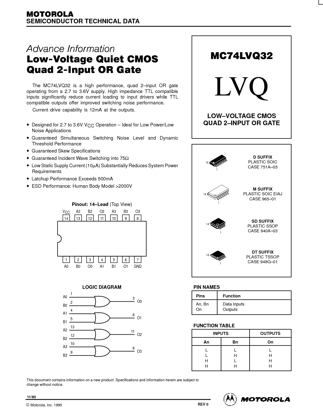 这MC74Lvq32 是 一个 高 业绩, 四边形 2–input 或 闸门
