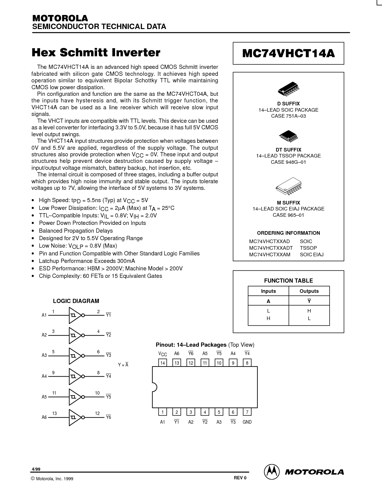 这 mc74vhct14a 是 一个 高级 高 速度 cmos 施密特 逆变器