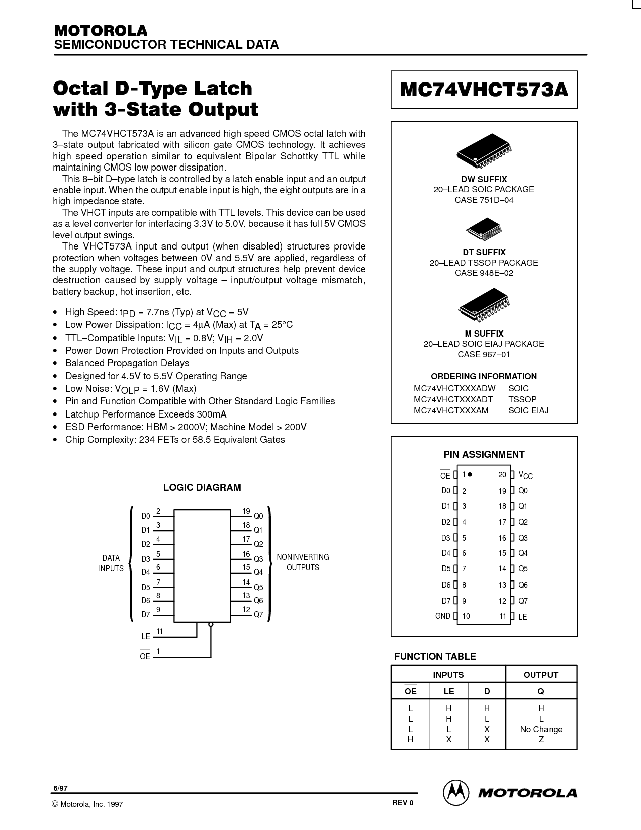 这 mc74vhct573a 是 一个 高级 高 速度 cmos 八进制 门闩 与