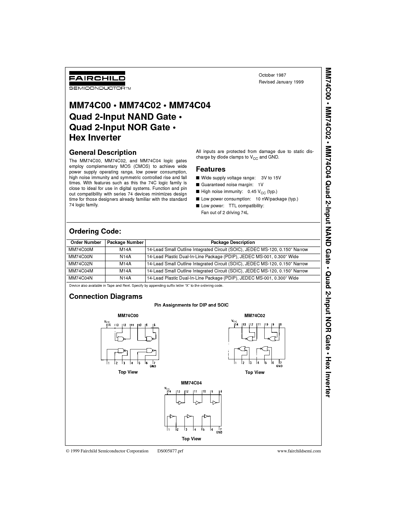 • mm74c02 • mm74c04 四边形 2-输入 与非 闸门 • 四边形 2-输入 也没有 闸门 • 十六进制 逆变器