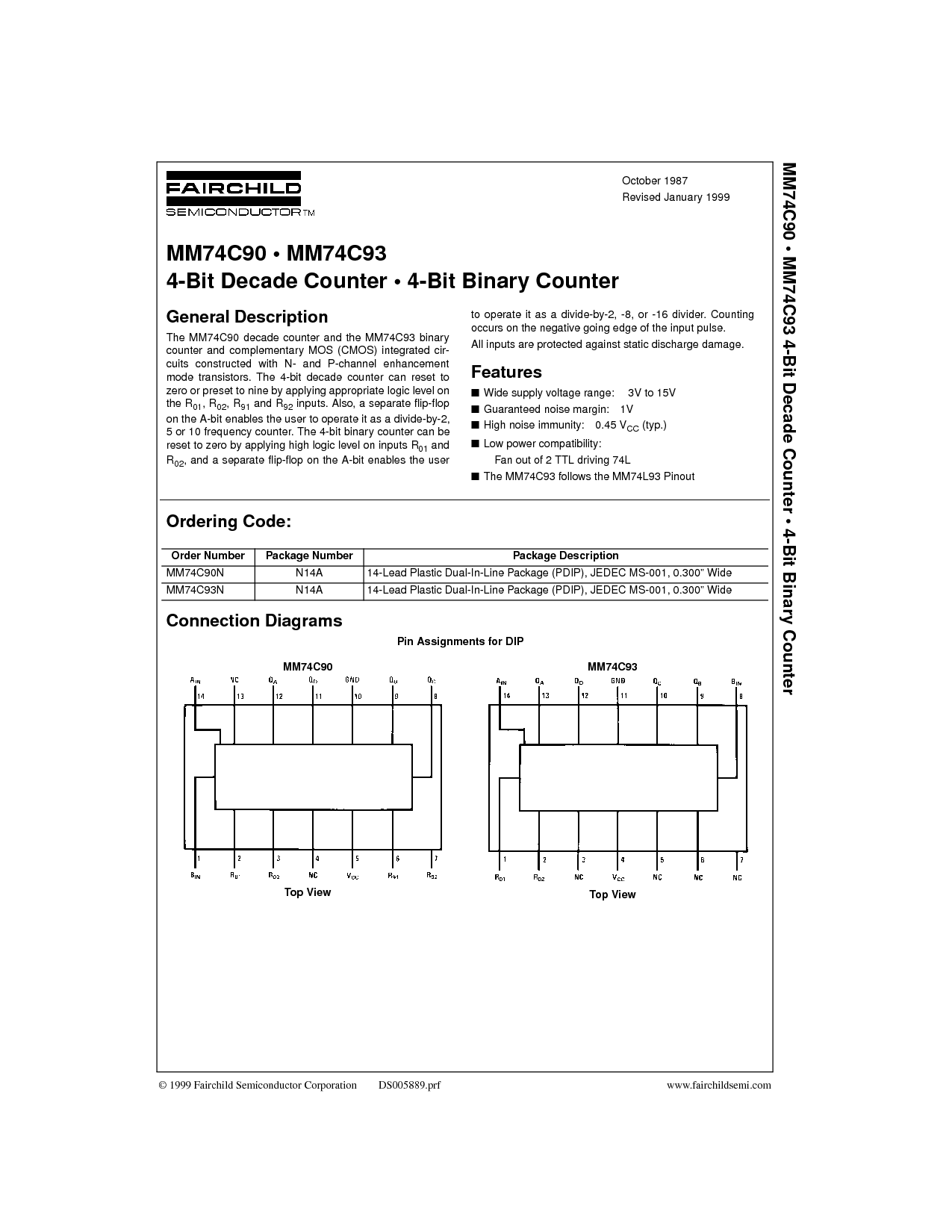• mm74c93 4-有点 十年 计数器 • 4-有点 二进制 计数器