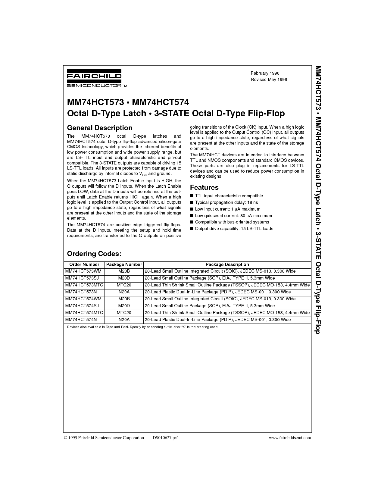• mm74hct574 八进制 d-类型 门闩 • 3-州 八进制 d-类型 触发器