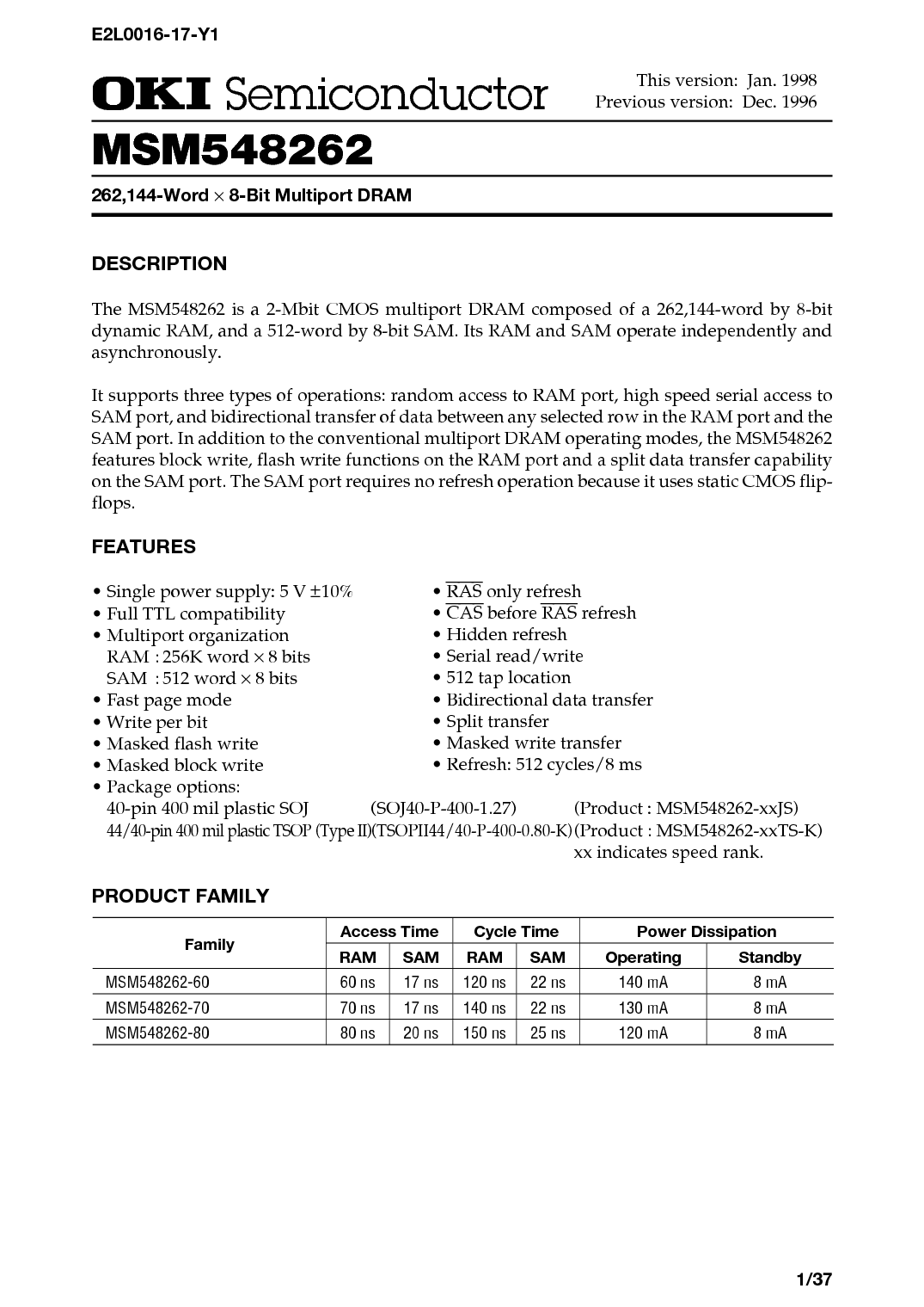 这 msm548262 是 一个 2-mbit cmos multiport dram 组成 的 一个 262,144-字 由 8-有点