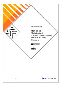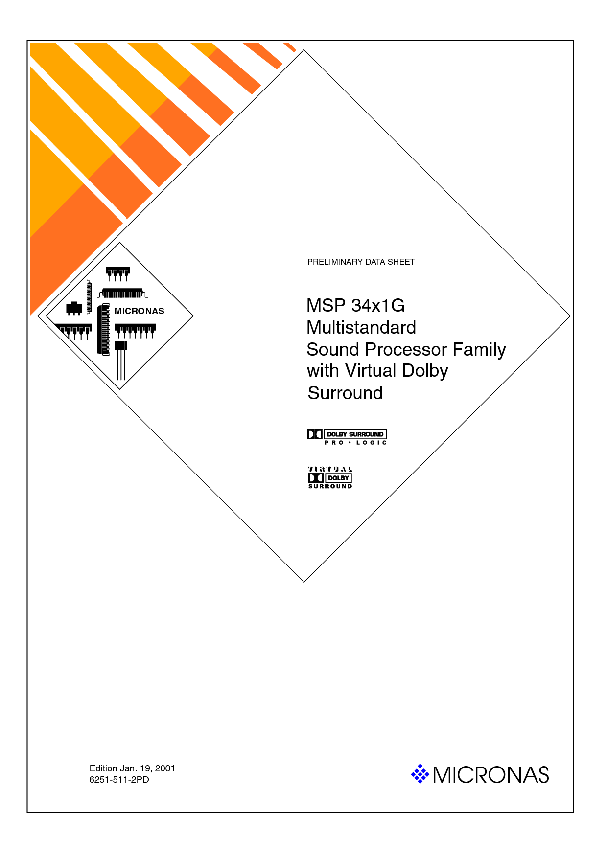 msp 34x1g Multistandard 声音 处理器 家庭 版本 jan. 19, 2001 6251-511-2pd 初步 数据 工作表 MICRONAS MICRONAS 与 虚拟 dolby 环绕 | |