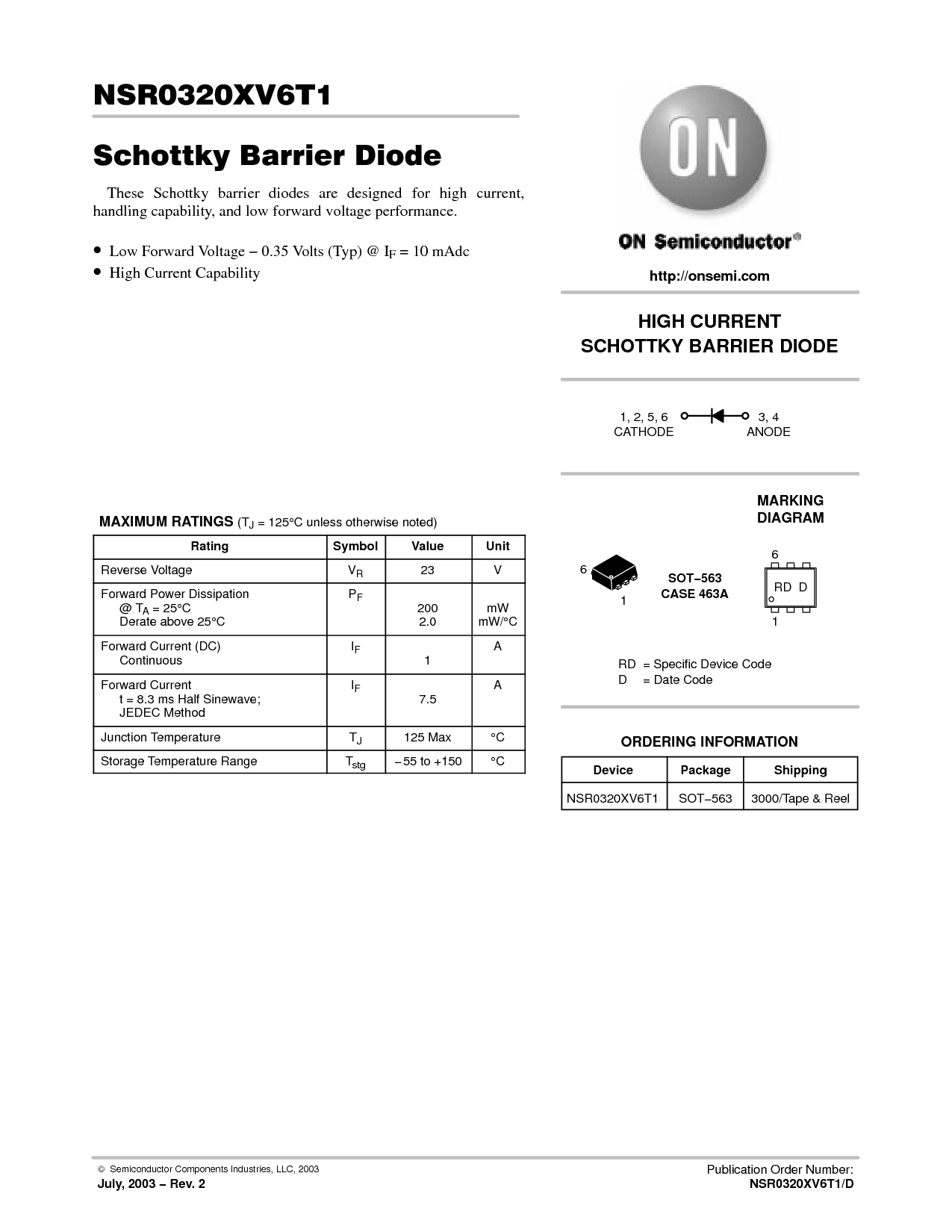 NSR0320XV6T1 SOT−563 3000/胶带 &放大器; 卷轴