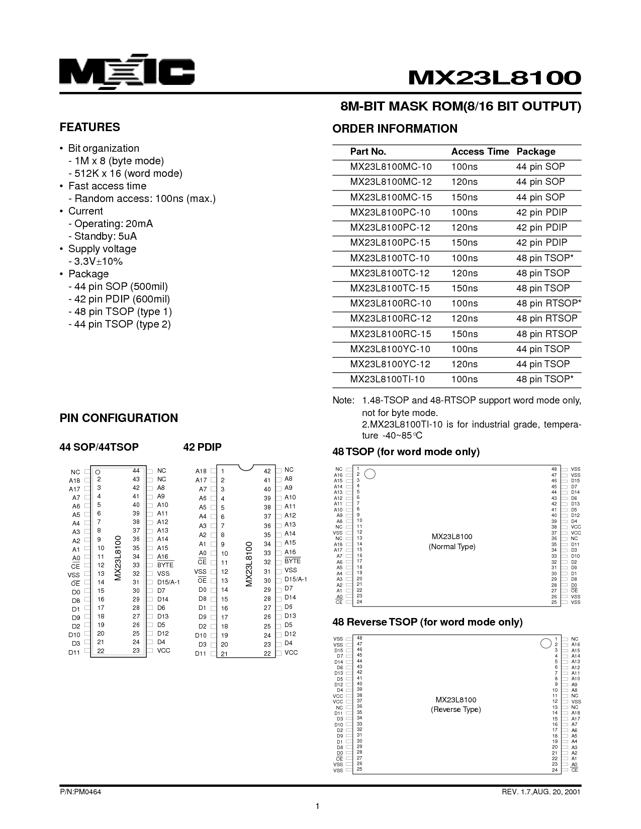 mx23l8100rc-15 150ns 48管脚 rtsop