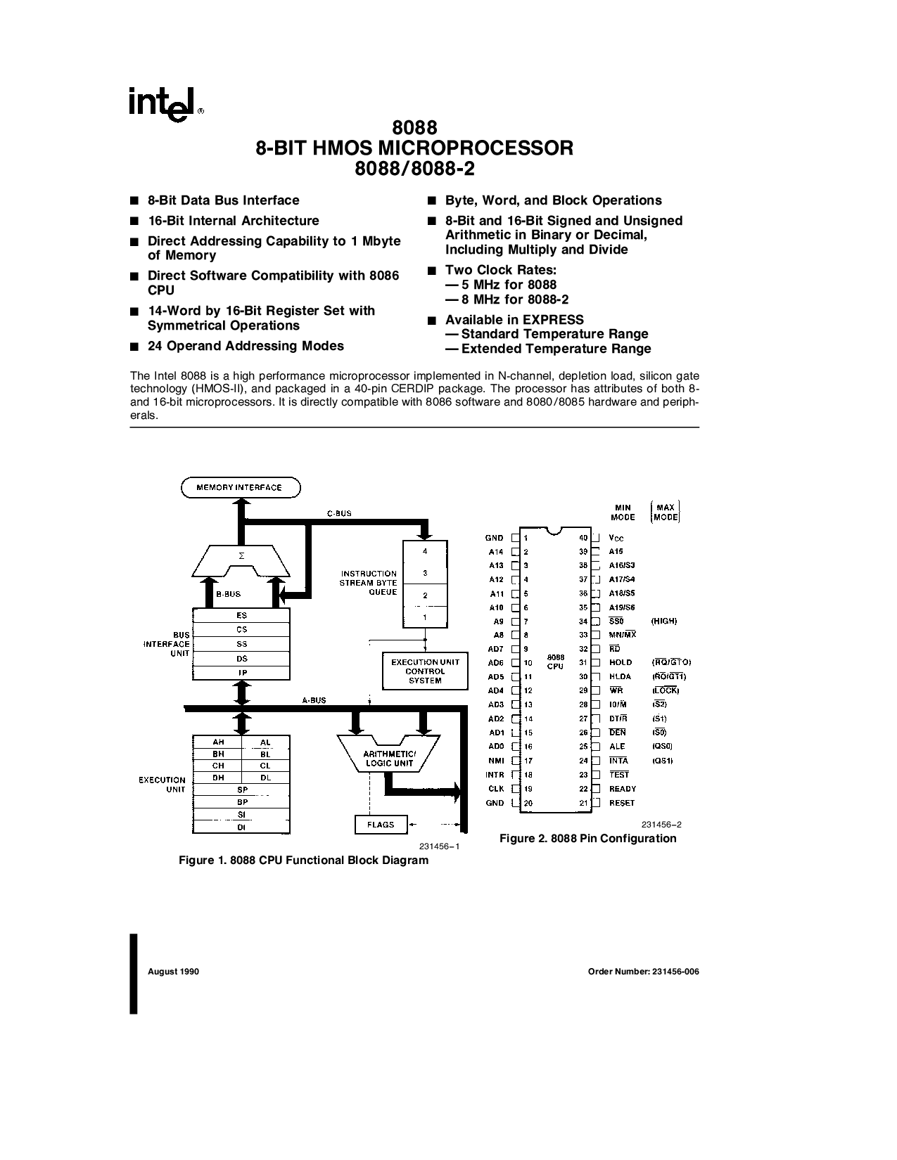 英特尔 8088 一个 业绩 微处理器 已实施 入点 n-channel 消耗 载荷 闸门