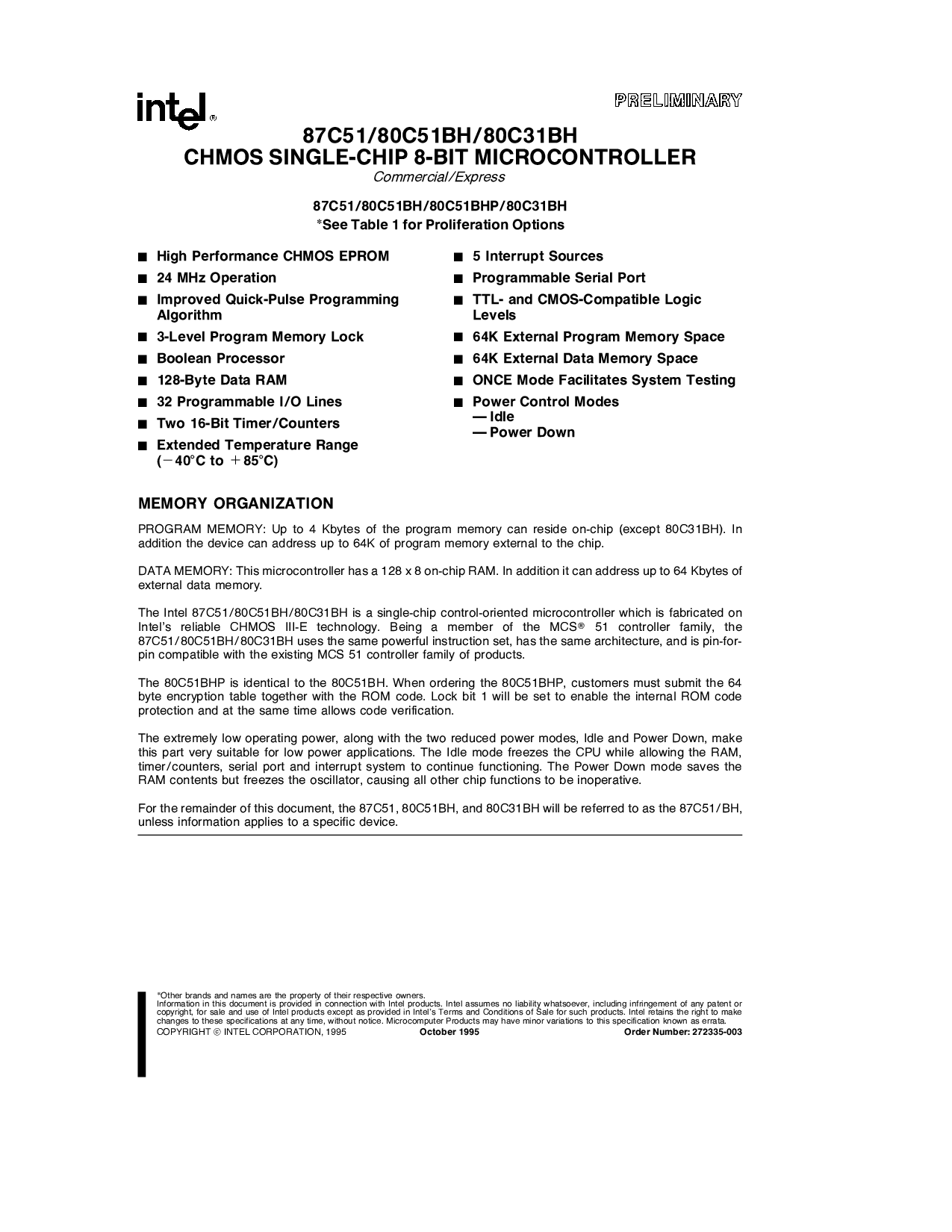 用于 这 余数 的 这个 document 这 87C51 80C51BH 和 80C31BH 将 是 参考 至 作为 这 87C51BH